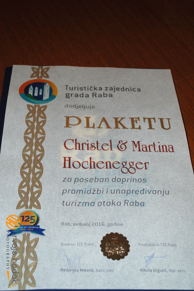 Priznanje u obliku Plakete i nekoliko prigodnih poklona uručili su im direktor Ureda TZG – a Nedjeljko Mikelić i voditelj marketinga TZG Raba Luka Perčinić.