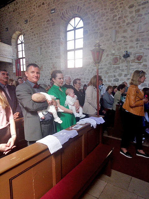 Nastavak u nedjelju, koja se zove „Nedjelja dobrog Pastira“ uljepšana je podjelom sakramenta Krštenja blizankama, djevojčicama Riti i Graciji. Roditelji Martina i Marko Buza Vidas su bili dotaknuti zrakom Božje blizine, ne kao iz daljine, nego u svom žaru, u svojoj snazi, u blizini koja ispunjuje, i donijeli su radost svima nazočnima.