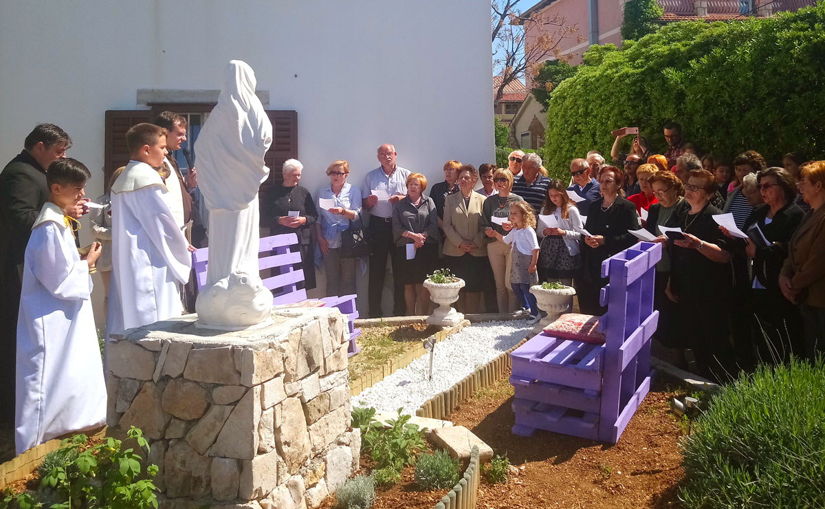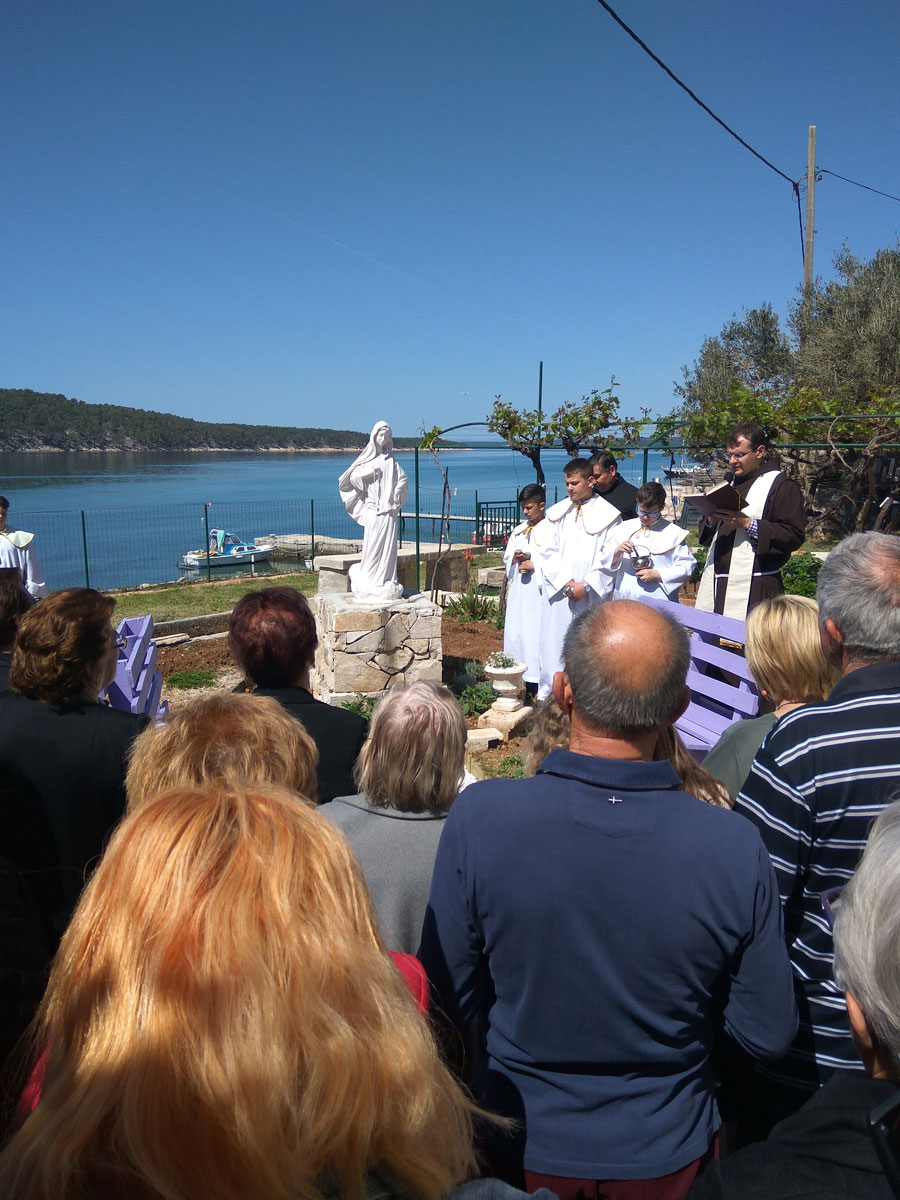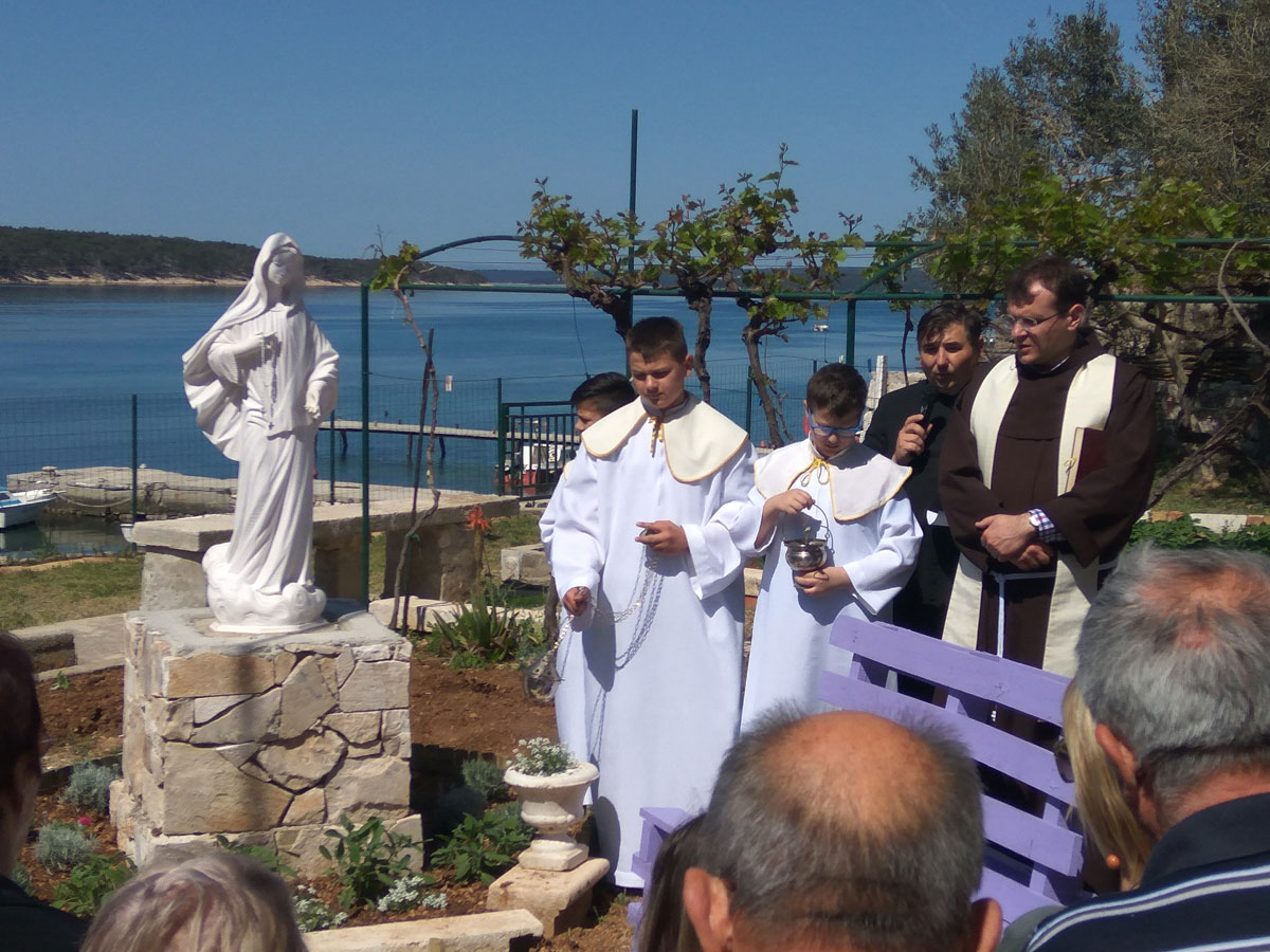 Nakon slavljenja euharistije u župnom dvoru je fra Josip Serđo Ćavar blagoslovio novi kip Međugorske Gospe koga su poklonile dvije obitelji iz Hercegovine. Mještani, prema svojim mogućnostima su očistili, uredili vrt kako bi se kip što ljepše uklopio u župni dvor. Možda netko sjedeći na moderno izrađenim klupicama pored Gospe potraži svoj duhovni mir, i time nađe duhovnu snagu ove sezone, ovoga ljeta. Kip Gospe postavljen je pogledom na Barbat kako bi mještani svoju vjeru i svoj svakidašnji život spojili u jednu cjelinu, kako ne bilo jaza između Evanđelja i svijeta u kojemu živimo, i u svoj život unesemo više vjere, a u svoju vjeru više života.