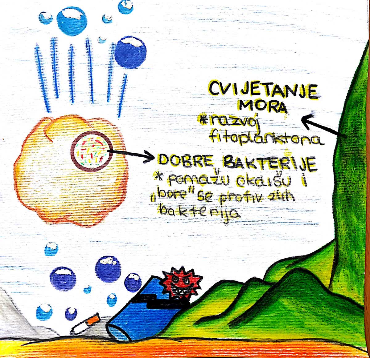Učenici, kao i stanovnici otoka Raba, žive u čistom okolišu, vole prirodu i smatraju da se otok kao takav treba i dalje održati čistim i urednim. Njihova je inicijativa bila da uz pomoć učiteljice prirode naprave nešto dobro za more koje okružuje otok Rab.