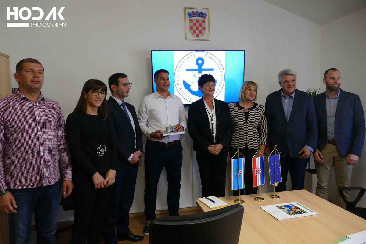 Posjet je započeo u prostorijama ŽLU Rab, gdje je ravnatelj Županijske lučke uprave u Rabu Nenad Debelić županu Komadini i njegovim suradnicama, te brojnim predstavnicima medija, predstavio projekte ŽLU Rab od kojih se većina odnosi na trajektnu luku „Mišnjak“ u kojoj se planira spomenuta dogradnja platoa s dvije rampe i izgradnja triju utvrdica za privez trajekata. Tim će se zahvatima, napomenuo je Debelić, osigurati siguran privez trajekata, dok će se dogradnjom platoa povećati manipulativna površina s dvije nove rampe površine cca 1615 m2. Zahvatom je predviđena i izgradnja obalnog zida visine 4,20 metara i dužine 30 metara, te dijela obalnog zida visine visine 1,88 metara i dužine 80 metara. Plato na pilotima bit će površine ca 697 m2 dok će plato na nasipu biti površine 918 m2.