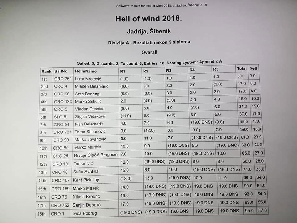 Ova regata se inače boduje i za službeni poredak za Kup Hrvatske u disciplini slalom 2018. gdje je Sanjin Debelić trenutno drži 25. mjesto u konkurenciji od 48 natjecatelja.