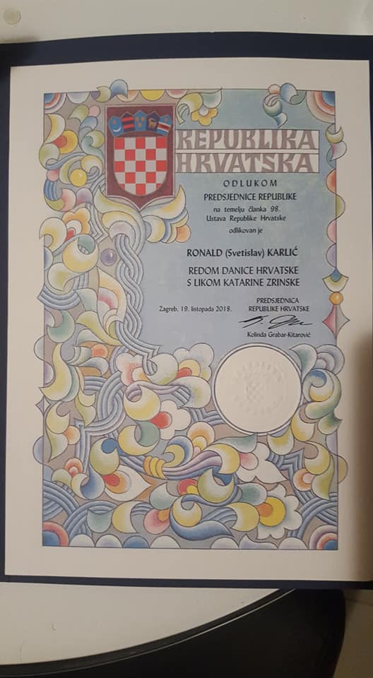 Ronald Karlić doista je osobit primjer ljudskog sebedarja, na ponos svoje obitelji, GDCK Rab, čitavog Raba i Hrvatske u cijelosti, a ovim mu je odlikovanjem iskazana zahvalnost i s najviše državne instance.