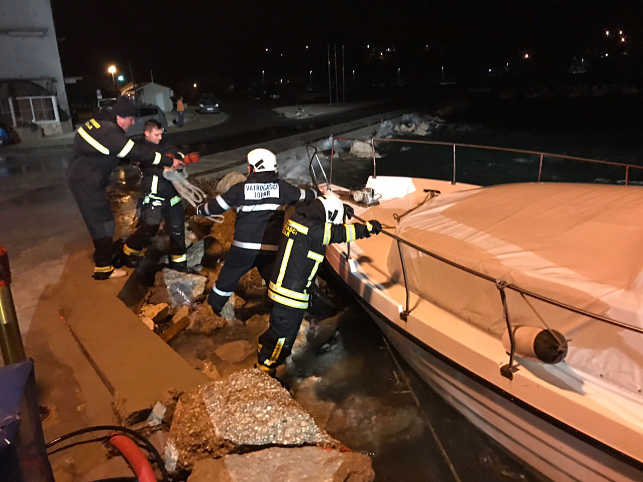 “Iako je došlo do prodora vode, snalažljivi vatrogasci postavili su nekoliko kamionskih guma ispod brodice, te su je vozilima i konopima učvrstili uz rivu kako bi spriječili daljnje razbijanje o lukobran i potonuće. Unatoč ekstremnim uvjetima, nitko nije ozlijeđen a brodica je danas već na suhom uz vrlo malo, gotovo neznatno oštećenje,” kazao je Mušćo.