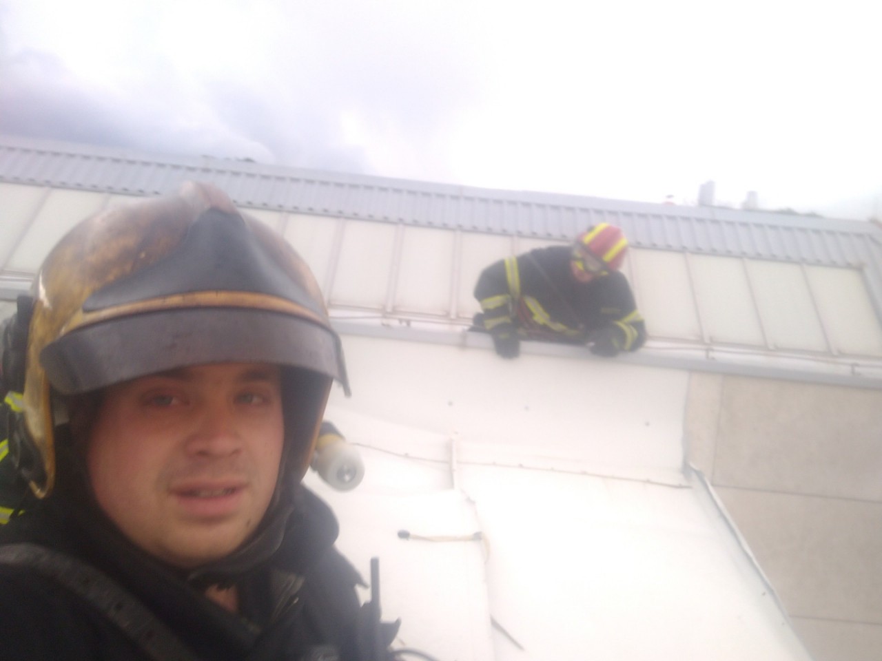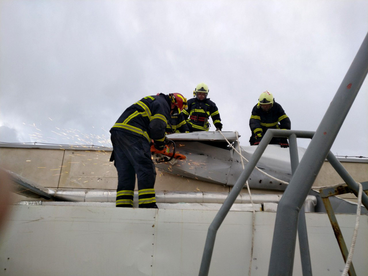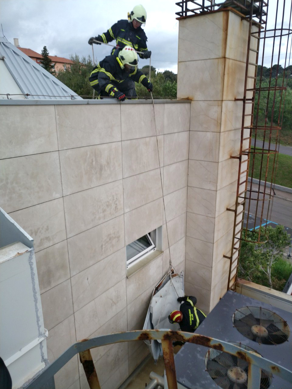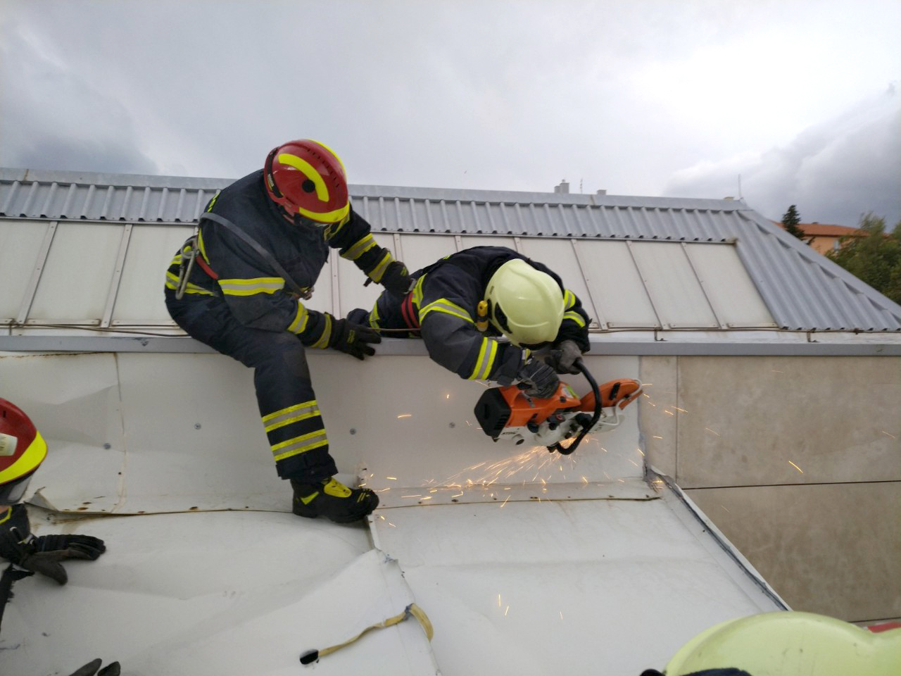 I tijekom popodneva vatrogasci su pilili podignuti lim na krovu Sportske dvorane, i sanirali štetu na krovu objekta na Petracima