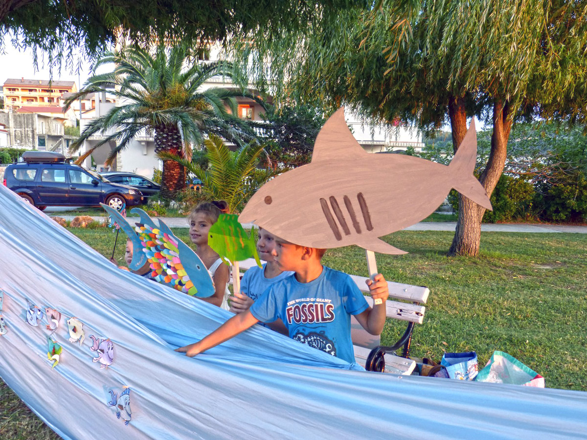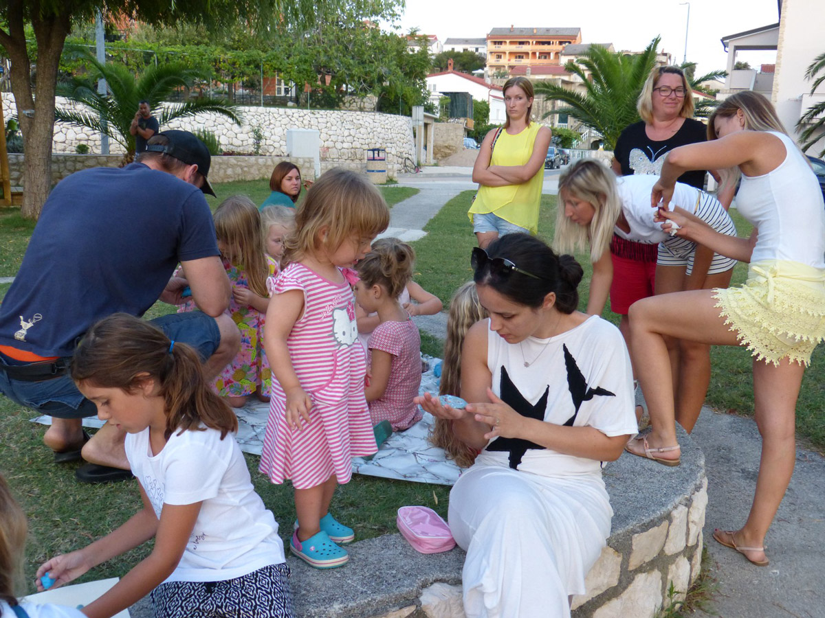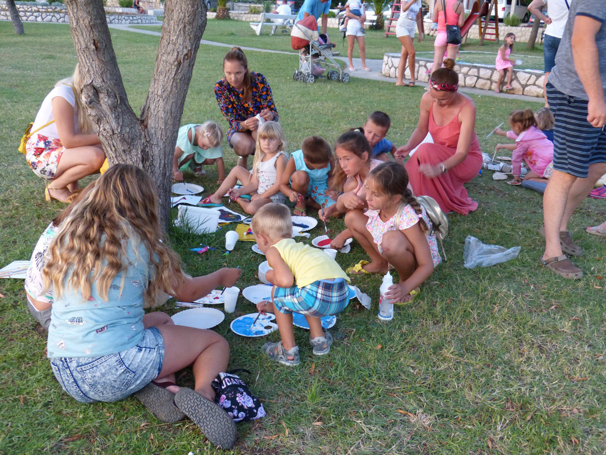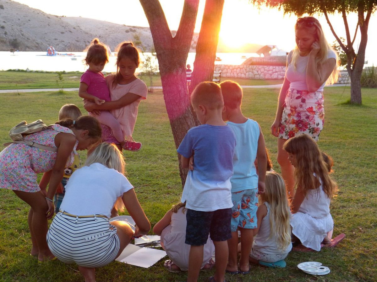 Djeca su radosno prihvatila ponuđene materijale te koncentrirano stvarala svoja djela potpuno igorirajući zalazak sunca i večer koja je prebrzo došla!