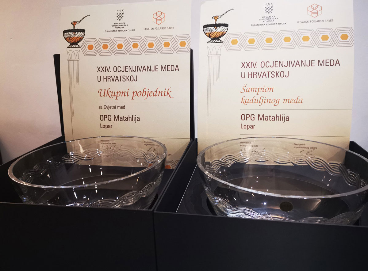 Naime na XXIV. ocjenjivanju meda u organizaciji HGK – Županijska komora Osijek i Hrvatskog pčelarskog saveza, OPG Matahlija osvojio je sve što se dalo osvojiti. Matahlije su ukupni pobjednici za najbolji med u Hrvatskoj (smilje – kategorija cvjetni med), imaju najbolji med od kadulje u Hrvatskoj te zlato za med od drače.