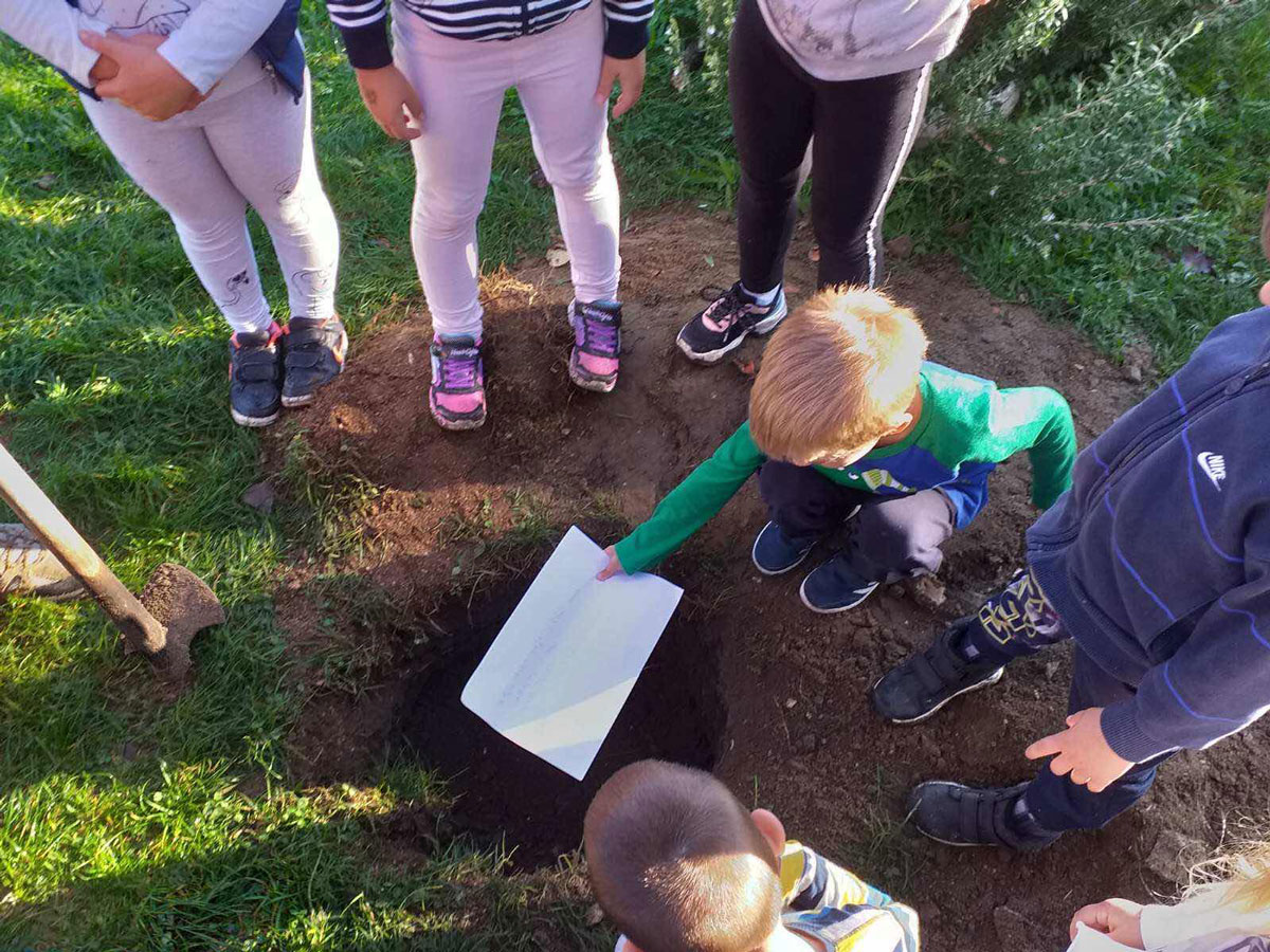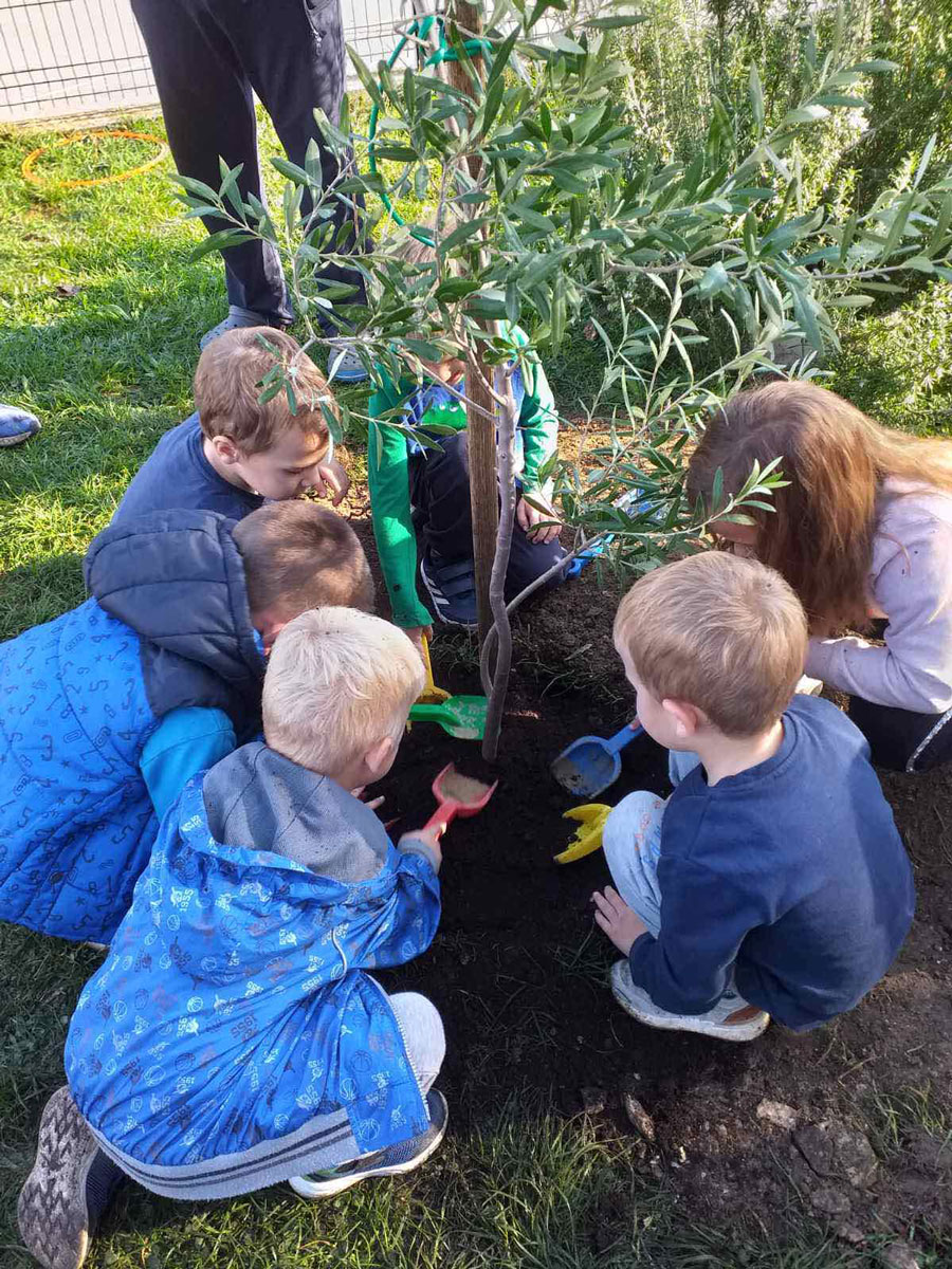 Pripreme za sadnju, i rukovanje alatom pod budnim okom djelatnika i članova udruge proteklo je uz puno veselja i brige za svoje sadnice, pa je tako uz maslinu u dvorištu Vrtića u Supetarskoj Dragi zasađena i poruka dječaka Ante Buza-Vidasa u kojoj želi da maslina što prije naraste i da puno plodova. Sadnicu masline na kojoj se od srce zahvaljujemo poklonila nam je Udruga maslinara “Orkula”.