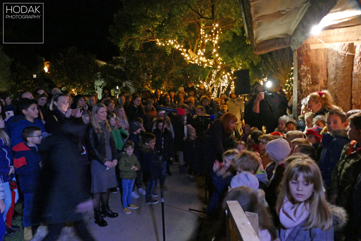 Maleni polaznici odgojnih skupina “Perlice” i “Krijesnice”, svoj su prigodni program izveli na samom ulazu u prekrasnu štalicu s božićnim jaslama, koju su i ove godine izgradile vrijedne ruke rapskih branitelja, a zatim su prvu svijeću na adventskom vijencu zajednički upalile malena Tonka Modrić i ravnateljica DV Pahuljica Sanja Grozdanić, uz veliki aplauz brojnih posjetitelja.
