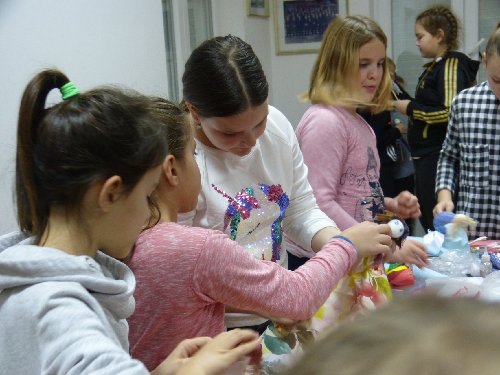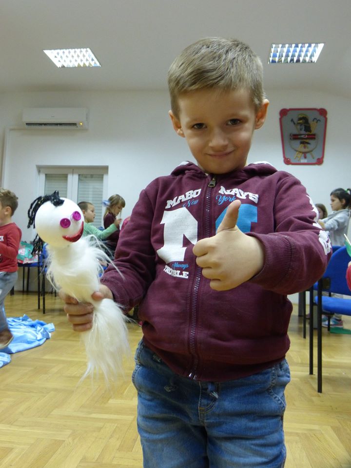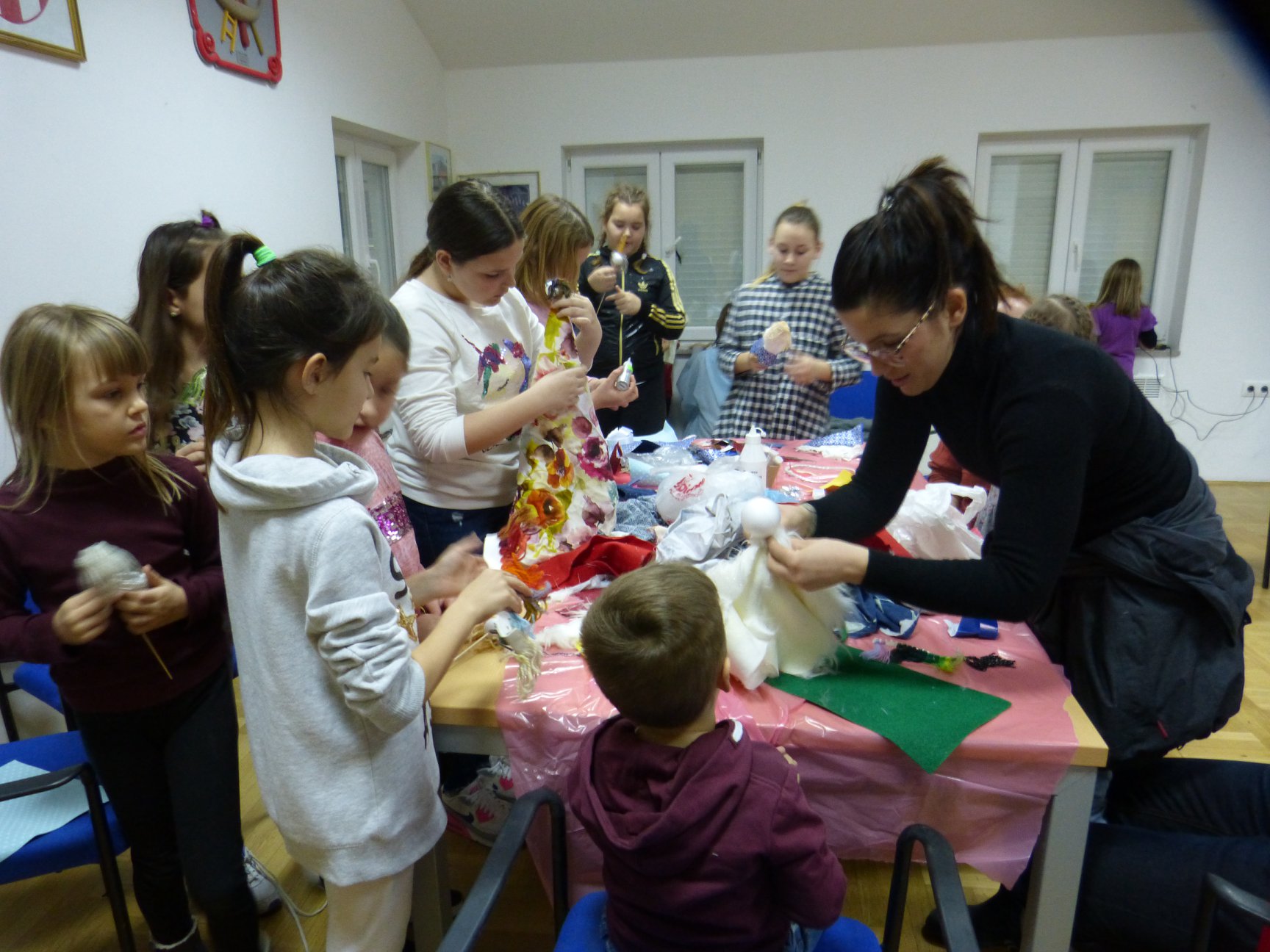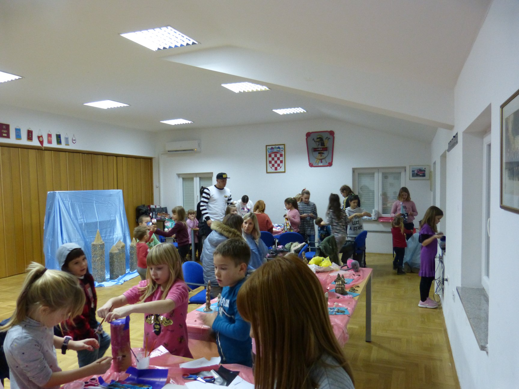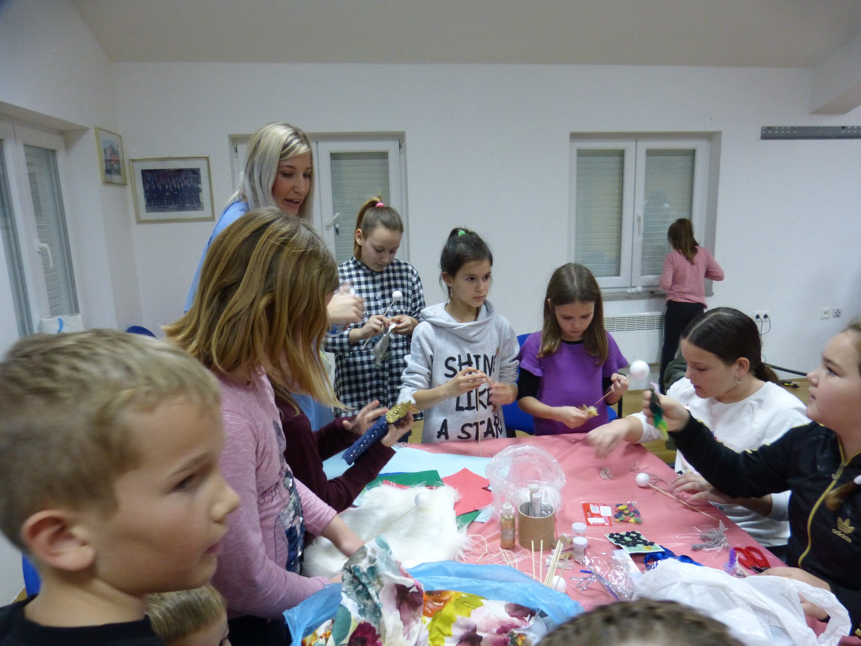 Drugi dio čitaonice bio je posvećen likovno-kreativnom izražavanju, pa je dvorana DVD-a bila pretvorena u pravu malu radionicu u kojoj su djeca rezala i lijepila, crtala, slikala i bojala, ukrašavala te u glini oblikovala svoje kreacije inspirirane pričom.