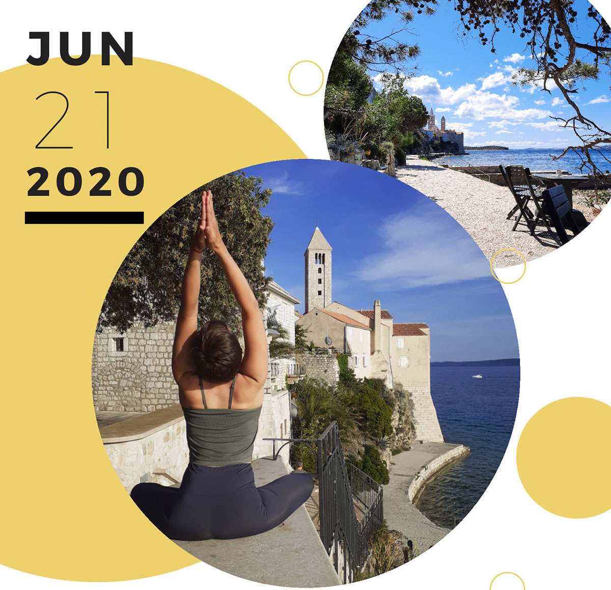 Rabljani su to učinili dvodnevnim zajedničkim vježbanjem pod sunčanim nebom, najprije u nedjelju 21. lipnja, na prekrasnoj lokaciji kod gradskog kupališta na Banovoj vili, pod vodstvom mlade voditeljice joge Dore Valovičić, a zatim i u ponedjeljak 22. lipnja, na Trgu sv. Kristofora, pod vodstvom Bogdane Vukasović.