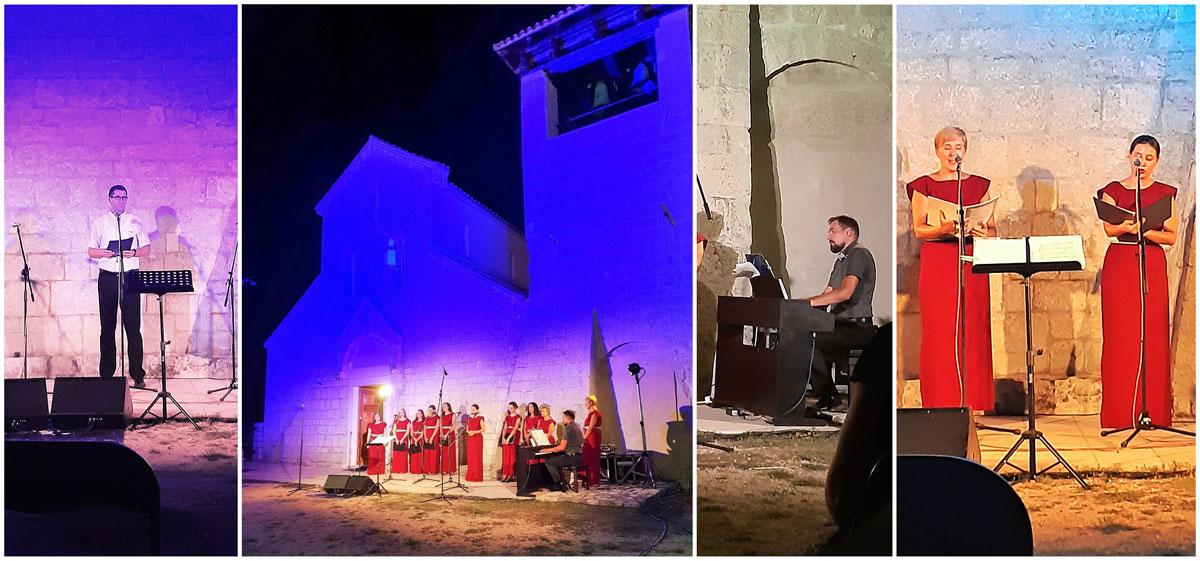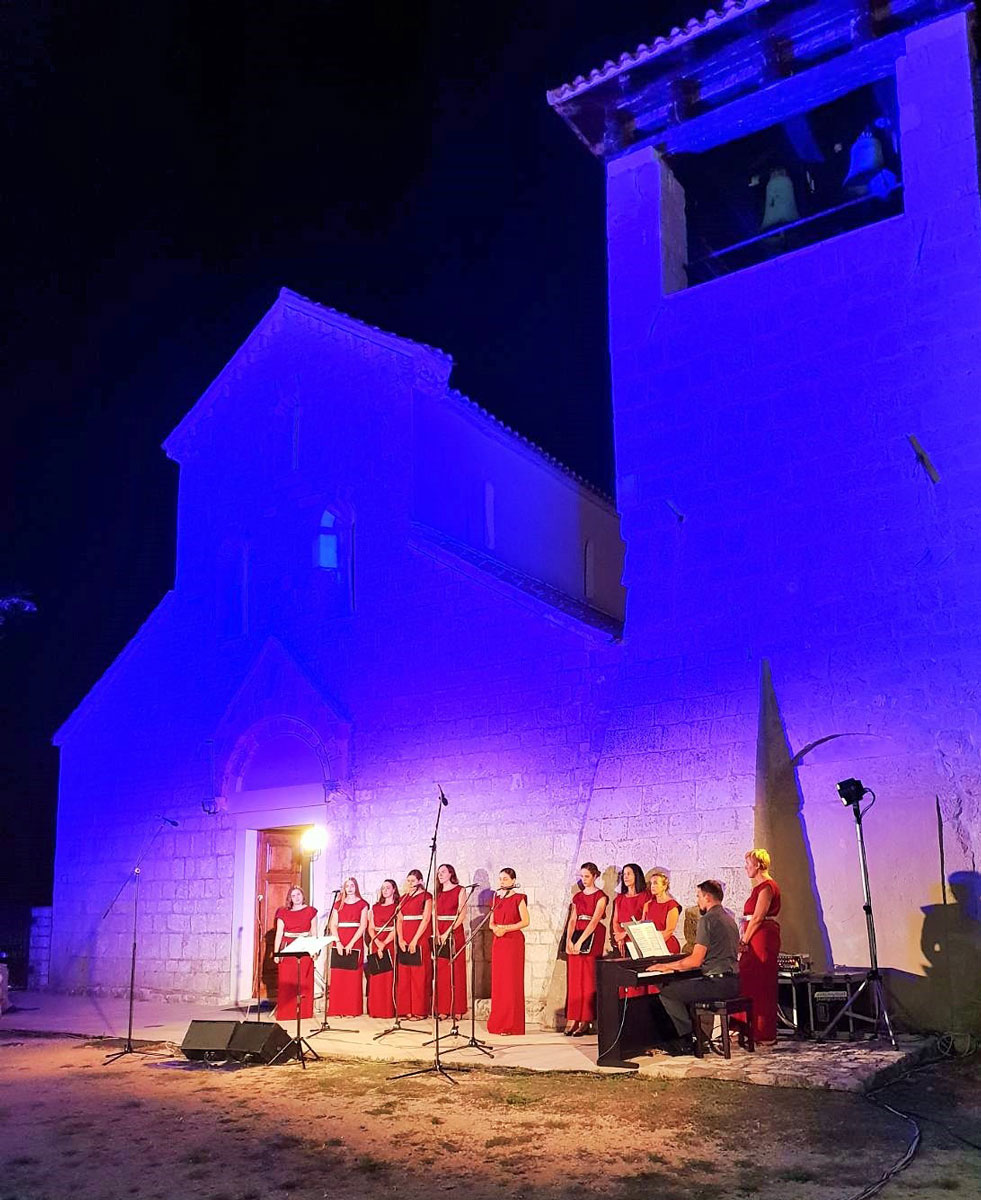 Kao solistice na koncertu u Supetarskoj Dragi nastupile su: Neli Salković (sopran) u izvedbi Kolbove „Ja se molim“ i u duetu sa sopranisticom Dajanom Lupić, izvodeći skladbu Césara Francka – „Panis Angelicus“. Faureovu „Molitvu“ otpjevala je Dajana Lupić, dok su Mendelssohnovu „Denn in seiner Hand ist“, skladanu na stihove Psalma 95, zajedno izvele Ingrid Haller (sopran) i Ena Lešić Jovanović (mezzosopran) koja je otpjevala i Pergolesijevu „Quae moerebat“. Ingrid Haller i Laura Marincel, (mezzosopran) u duetu su izvele Jelićevu „Quae est ista“ i solo „Fac ut portem“ Giovannija Battiste Pergolesija, a u izvedbi zbora mogla su se čuti i mnoga druga poznata djela duhovnog karaktera (Ave Maria, Regina Coeli, Tantum ergo…). Sjajne vokalistice Zbora Schola Cantorum Rijeka na orguljama je pratio Ivan Bošnjak.