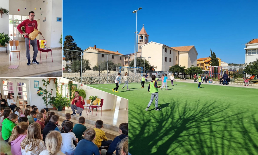 Nakon kulture prešlo se na sportske aktivnosti, školsku ligu u malom nogometu. Budući da je vrijeme bilo idealno za vanjske aktivnosti prvo kolo školske lige odigrano je na otvorenom, na igralištu ispred škole. U natjecanju sudjeluju četiri ekipe u kojima su učenici sva četiri razreda. Vrlo važno je istaknuti da u natjecanju sudjeluju i djevojčice.