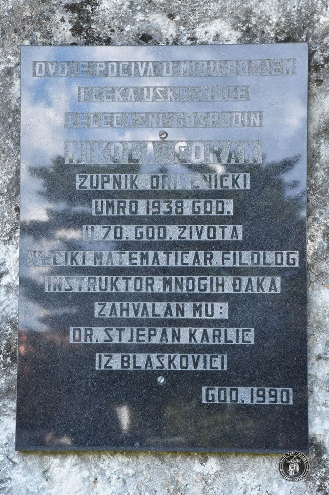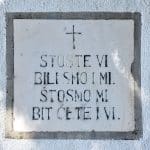 Prije nego sam krenuo dalje još jednom pogledao sam ploču koja je stajala na crkvici na ulazu na groblje. Natpis se može svakako shvatiti, a i posvetiti svima. Ja sam ga prvi put vidio prije desetak godina i za mene ima neko drugo značenje, a svatko neka ga sebi objasni na svoj način: ŠTO STE VI BILI SMO I MI, ŠTO SMO MI BIT ĆETE I VI.