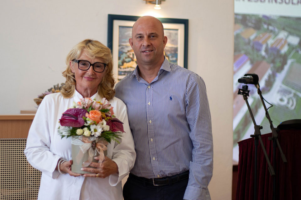 – “Hvala vam lijepa i hvala vam za zadnjih 20 godina. Hvala svima koji su uveličali ovaj dan. Nadam se da ćete tijekom ovoga dana uspjeti vidjeti sve ono što smo mi radili, sve ono na što smo ponosni, a nećemo moći ne osvrnuti se i na neke naše bolne rane” – kazala je na kraju uvodnog dijela govora ravnateljica SŽB Insula Vesna Šendula-Jengić te je pozvala Marina Lazarića, predsjednika Upravnog vijeća bolnice, da se obrati prisutnima.