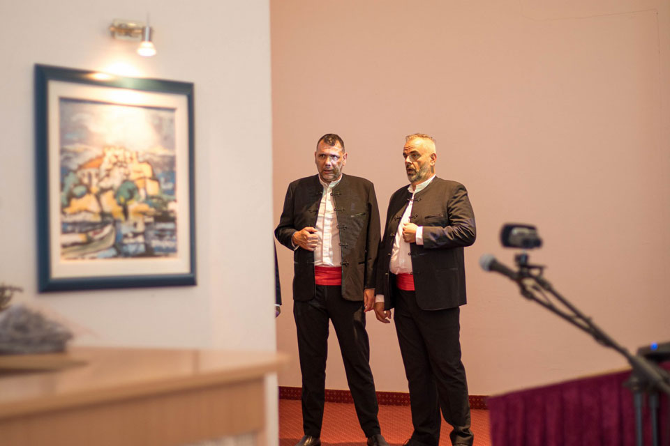 Prije pozdravnih riječi domaćina, ravnateljice Specijalne županijske bolnice Insula prof. dr. sc. Vesne Šendule-Jengić na pozornicu konferencijske dvorane stupila je nagrađivana rapska klapa Krijanca čiji su članovi, što doznajemo od ravnateljice, otpjevali pjesmu “More” koju je napisao pomorac, bivši pacijent bolnice, a uglazbio maestro Ljubo Stipišić Delmata.