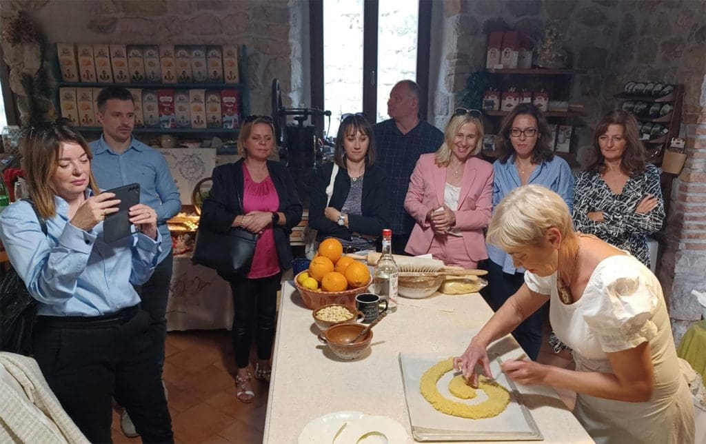 Okupljanje sudionika bilo je od 9.30 sati u “Kući rabske torte” gdje su ravnatelji i ravnateljice škola s područja Primorsko-goranske županije iz prve ruke mogli vidjeti kako se radi najpoznatija lokalna delicija – rapska torta, te uživati u ostalim proizvodima “Vilma slastica”.
