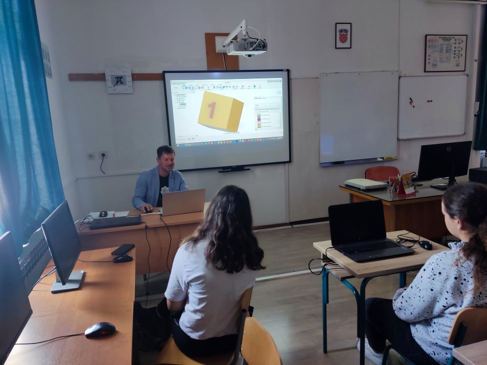 U drugom dijelu svoje sesije Maričić je prezentirao prisutnima izradu jednostavnih 3D modela, na primjeru personaliziranih kocki, sugerirajući pritom što je sve od 3D modela moguće izraditi, ali istodobno također potičući i maštu među prisutnima. Nakon toga prezentirao je funkcioniranje 3D printera, kakvih SŠ Markantuna de Dominisa trenutno u posjedu ima dva, a planira ih se koristiti kako za potrebe nastave, tako i u radu školske zadruge KUŠ. Printeri su pribavljeni iz EU fondova, putem projekta za ruralne sredine LfE (Learning from the Extremes), koji je prisutnima i omogućio edukaciju te iz projekta e-Škole. Nositelj oba projekta je CARNET.