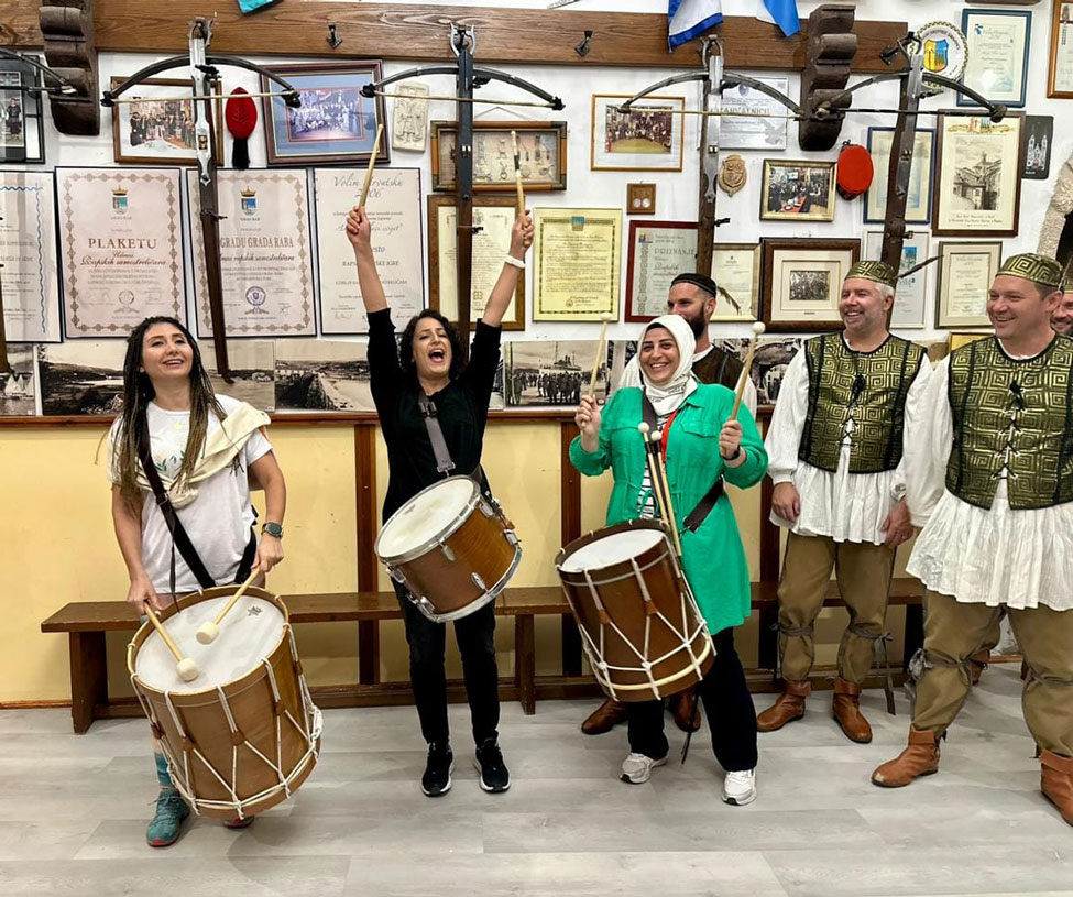 U Udruzi rapskih samostreličara organiziran je zanimljiv prijem te su pokazane aktivnosti različitih sekcija Udruge. Sudionici su se okušali u vještinama bubnjanja, plesanja te nošenja samostrela što im je bilo posebno impresivno.