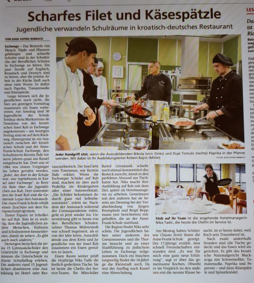 Grupa učenika drugih razreda Srednje škole Markantuna de Dominisa Rab, u pratnji ravnatelja Damira Paparića, stručnog učitelja kuharstva Roberta Bajčića, te prof. Aleksandre Brmbote i Margarite Čutul, boravila je od 2. do 9. prosinca u njemačkom gradu Eschwegeu na stručnoj ekskurziji.