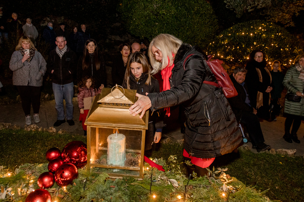 Nakon otpjevanih prigodnih blagdanskih pjesama, treću svijeću na adventskom vijencu u parku Dorka zapalile su djevojčica Flora i njezina baka Ankica i zadobile aplauz svih prisutnih u parku.