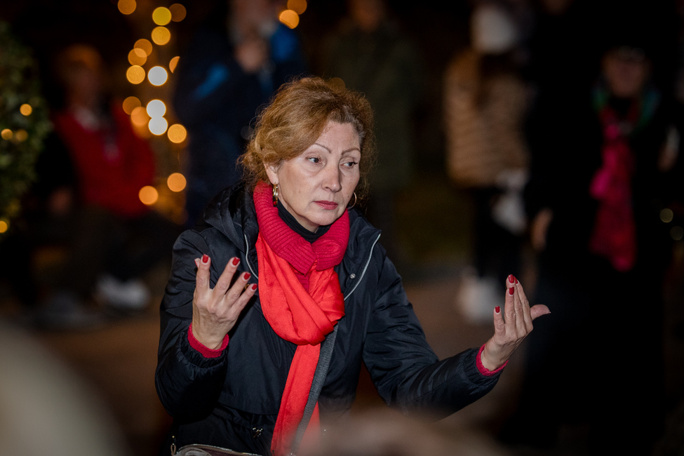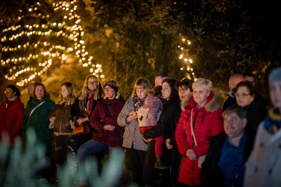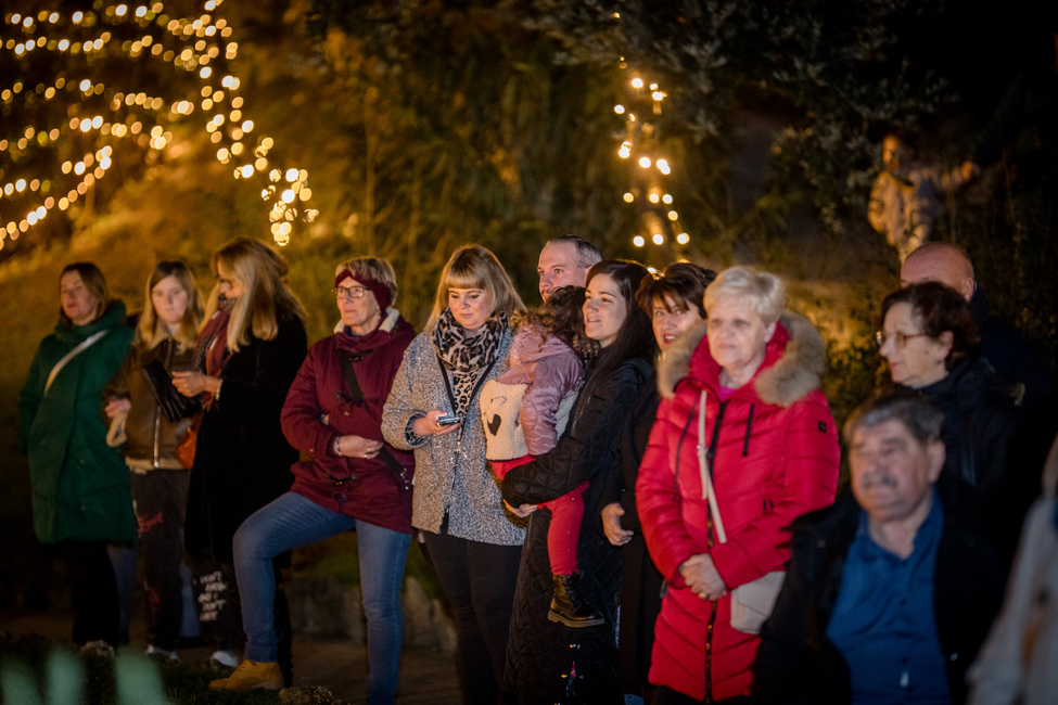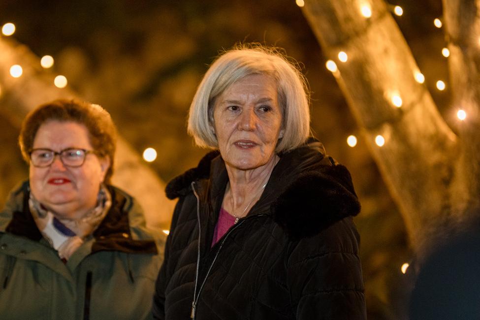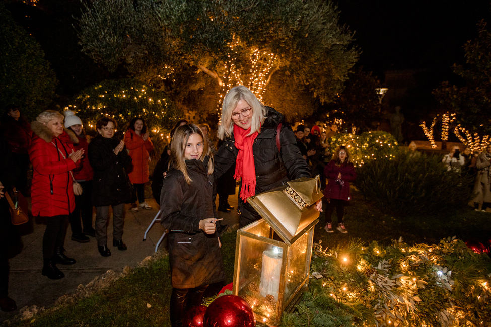Nakon otpjevanih prigodnih blagdanskih pjesama, treću svijeću na adventskom vijencu u parku Dorka zapalile su djevojčica Flora i njezina baka Ankica i zadobile aplauz svih prisutnih u parku.
