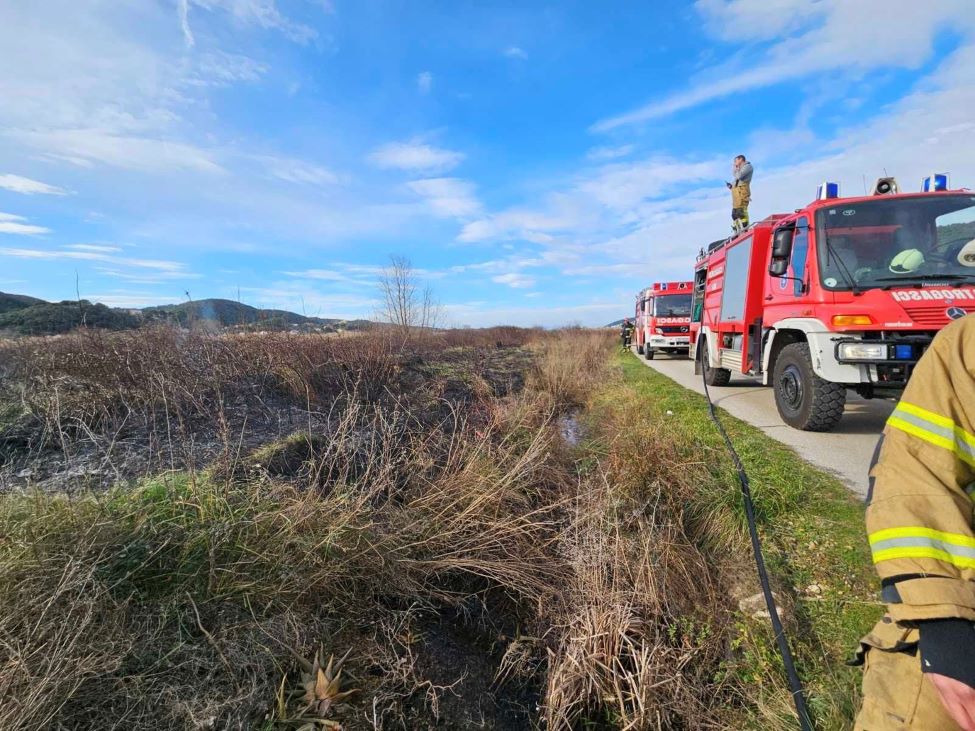 Na teren je izašlo 14 vatrogasaca sa 4 vozila. Opožareno je 120×30 metara makije, niskog i visokog raslinja. Nisu zahvaćene poljoprivredne kulture, pa štete, u principu – nema.