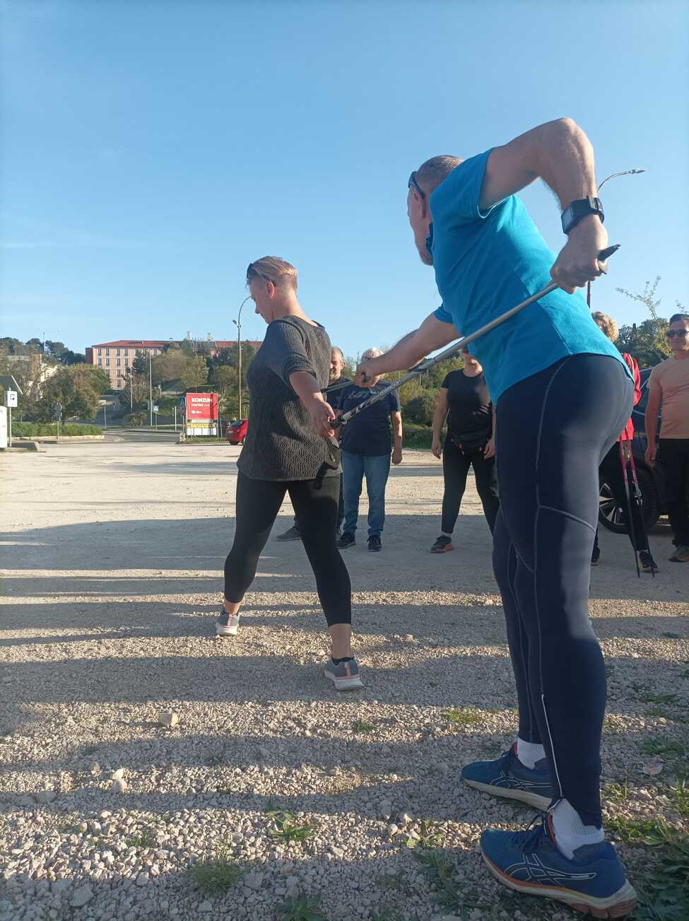 Na jučerašnjoj pokaznoj radionici projekta HodaMare, Krešimir Ritz, predsjednik Hrvatskog saveza nordijskog hodanja, održao je obuku za troje novih instruktora nordijskog hodanja na Rabu.