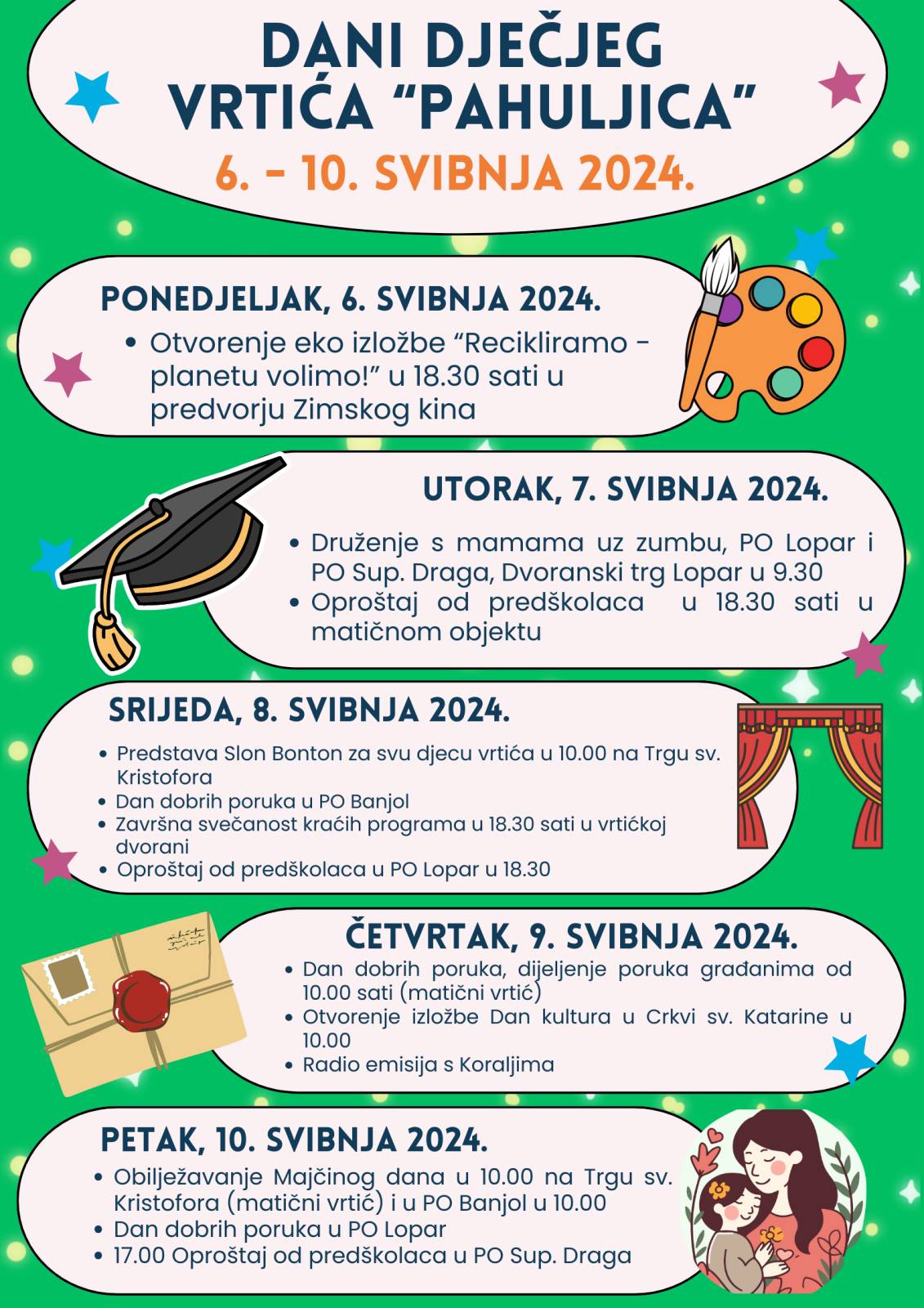 Već tradicionalno Dječji vrtić “Pahuljica” početkom svibnja obilježava Dane vrtića, u tjednu kada se obilježava i Dan Grada Raba.