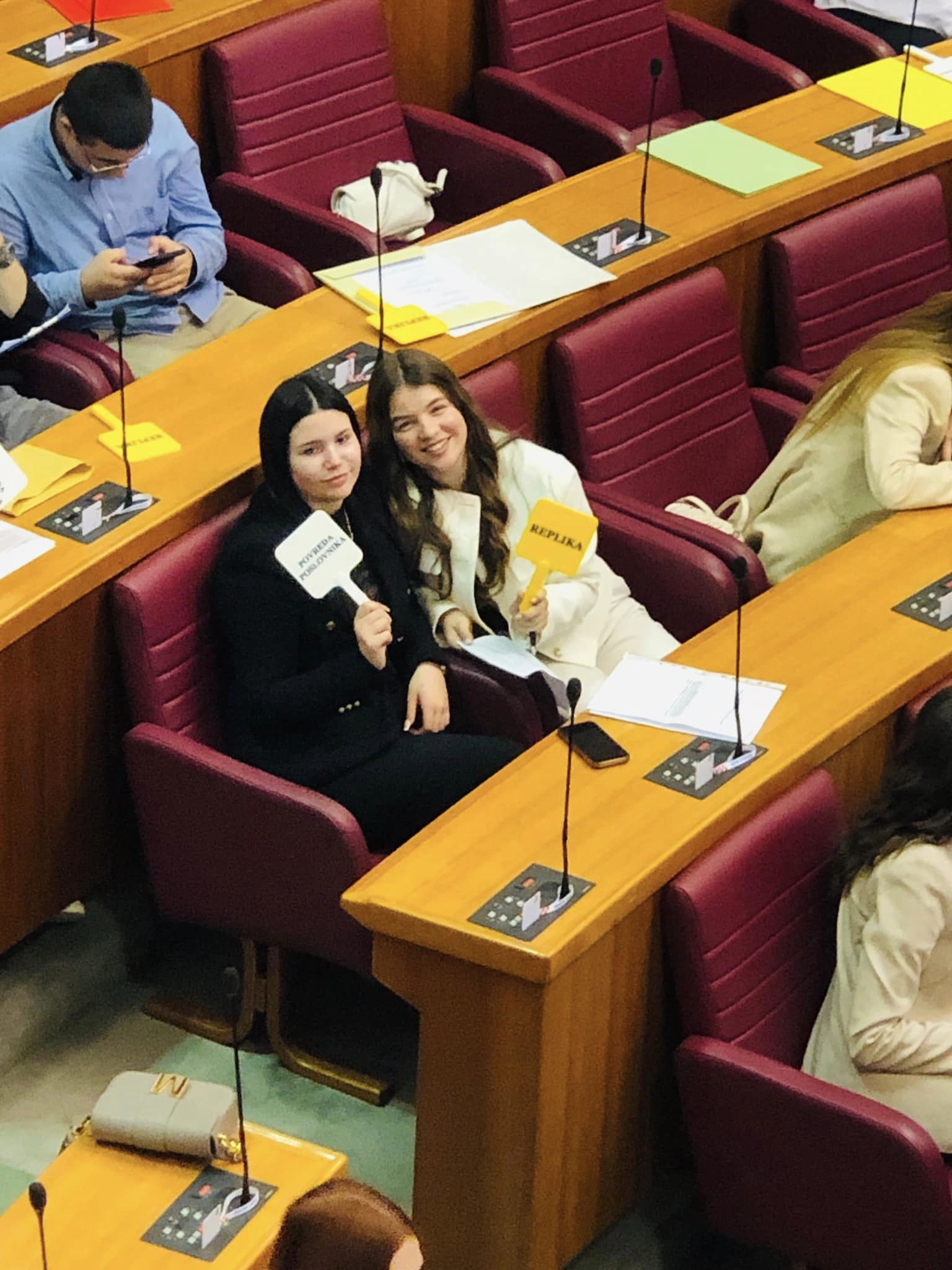 Učenici 4.g razreda SŠ Markantuna de Dominisa i ove su godine uz mentoricu Marinu Beg Umiljenović, u sklopu predmeta politike i gospodarstva, sudjelovali u sastavu zastupnica Nike Franelić i Aurore Peran, te zastupnika Marina Karavlaha u ime Kluba zastupnika Srednje škole Markantun de Dominis, Rab.