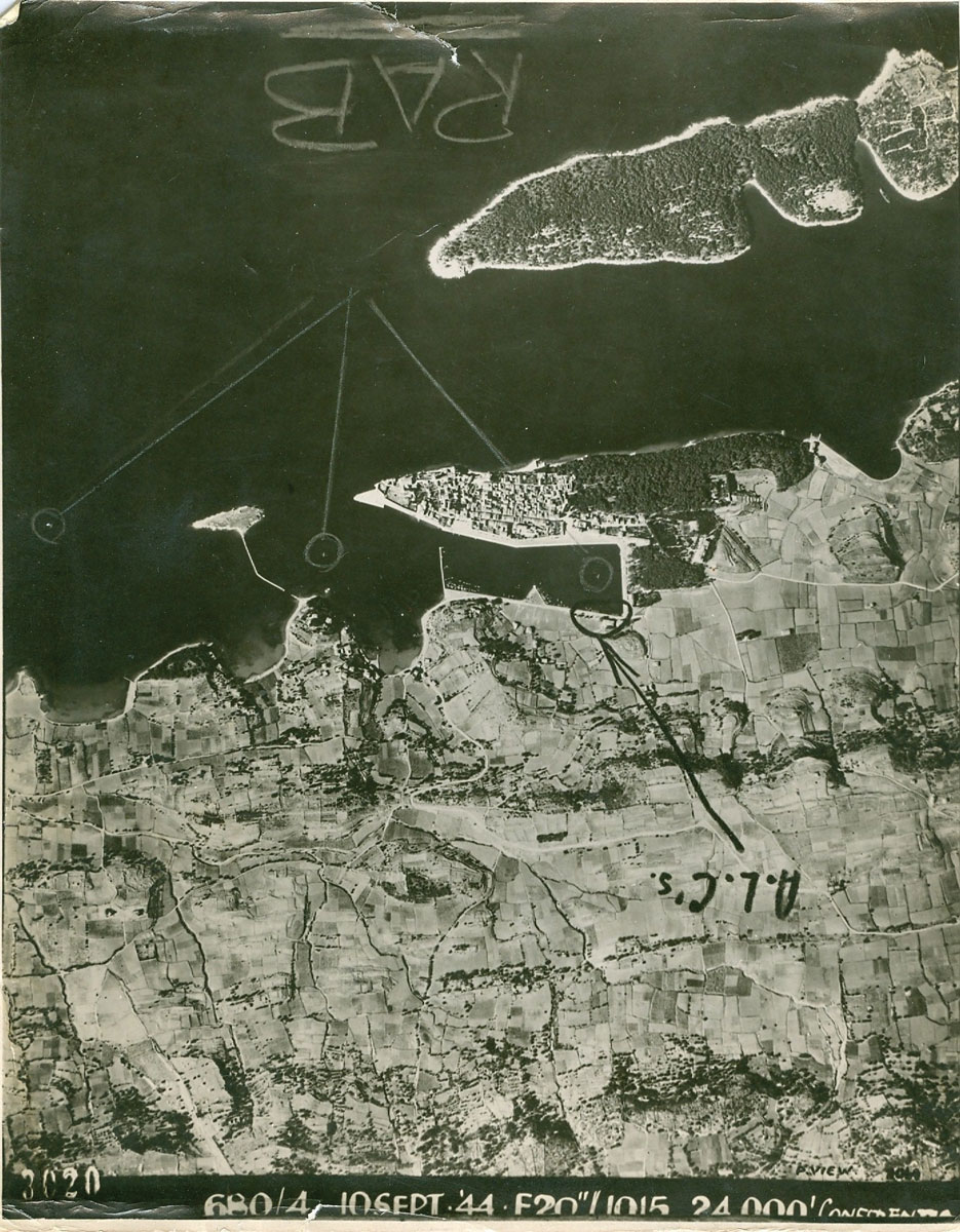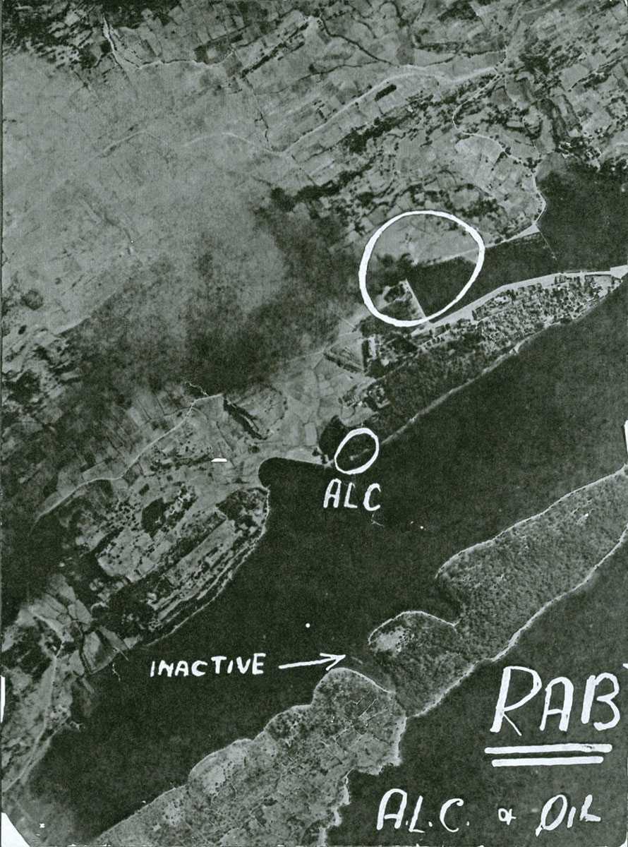 Fotografije u prilogu bi se mogle nazvati „prije“ i „poslije“. Na njima je vidljiv datum, visina (24.000 stopa – 7.300 m) i tip kamere kojom je fotografirano. Na prvoj je Obavještajna služba zaokružila avione u linijskoj formaciji, jedan iza drugoga, u prvome naletu iznad Raba.
