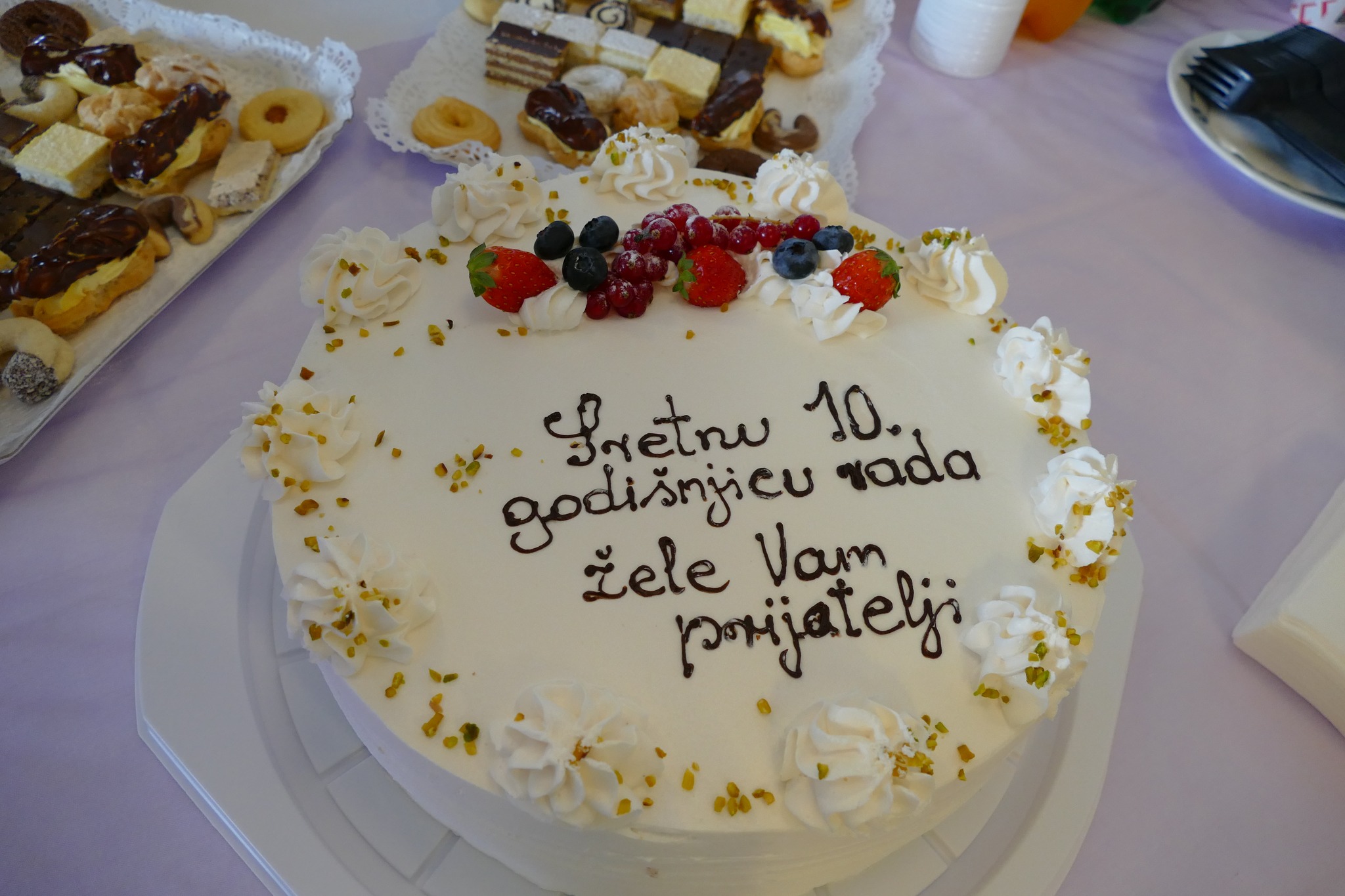 Svojim pozdravnim govorom doc. Jonovska osvrnula se na desetljeće rada na Odjelu bolesti ovisnosti koje je, kako je navela, kao i sve u životu, bilo ispisano mnogim usponima i padovima. Uz zahvalu svome timu te brojne ohrabrujuće i motivirajuće riječi upućene pacijentima, istaknula je kako, unatoč svim teškoćama, uvijek u sebi moramo tražiti svjetlost. Na terapijskoj zajednici bile su prisutne i medicinske sestre i tehničari te ostalo osoblje Odjela.