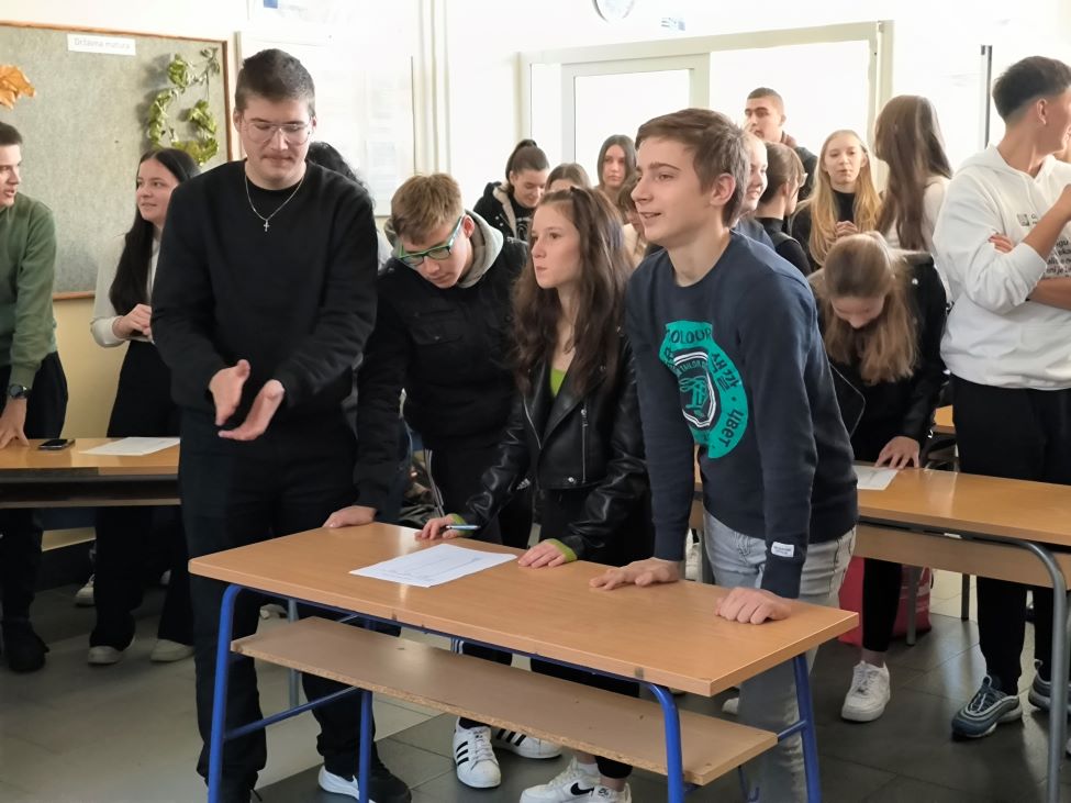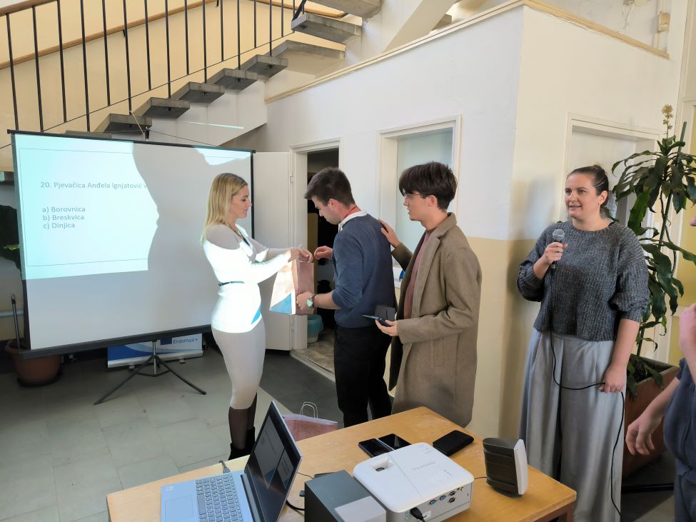 Najbolji razred u kvizu bio je 4.g, a pobjedu kod profesora odnio je tim u kojem su bili Maja Vukmirović, Darko Muža, Ana Manjaka i Petra Brnabić.