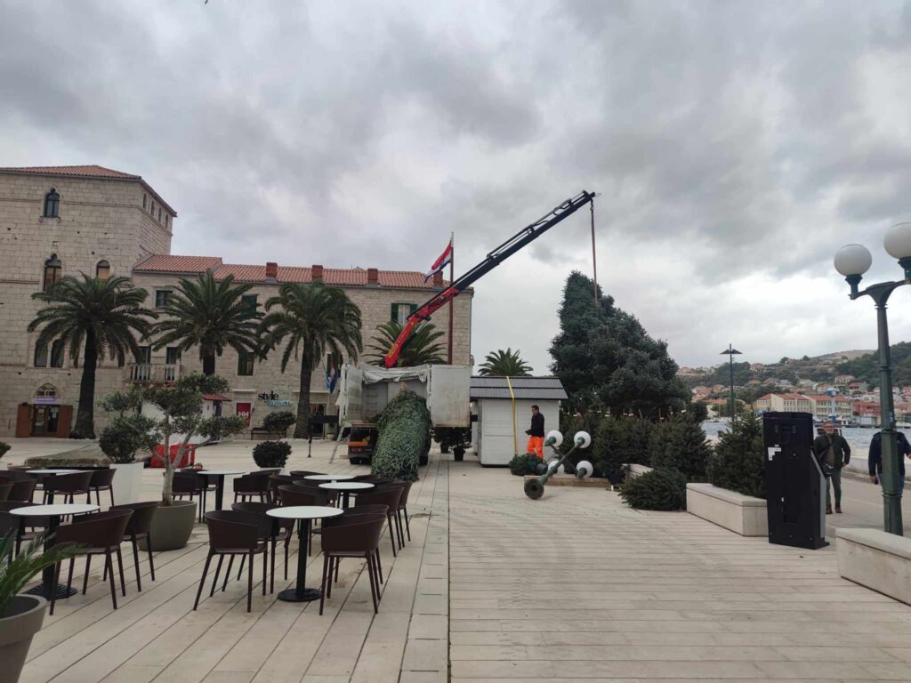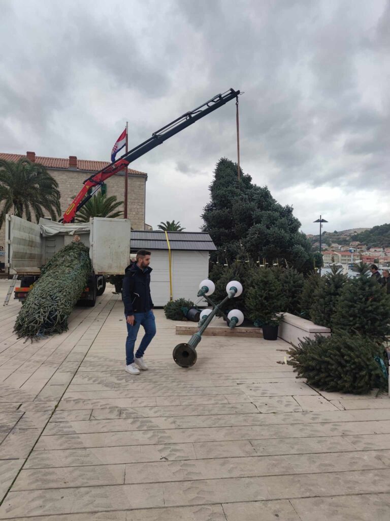 Pripreme za Najljepši otočni advent su u punom tijeku. Postavljaju se ukrasi, klizalište je zauzelo svoju poziciju na Varošu, a danas je stiglo i centralno božićno drvce.