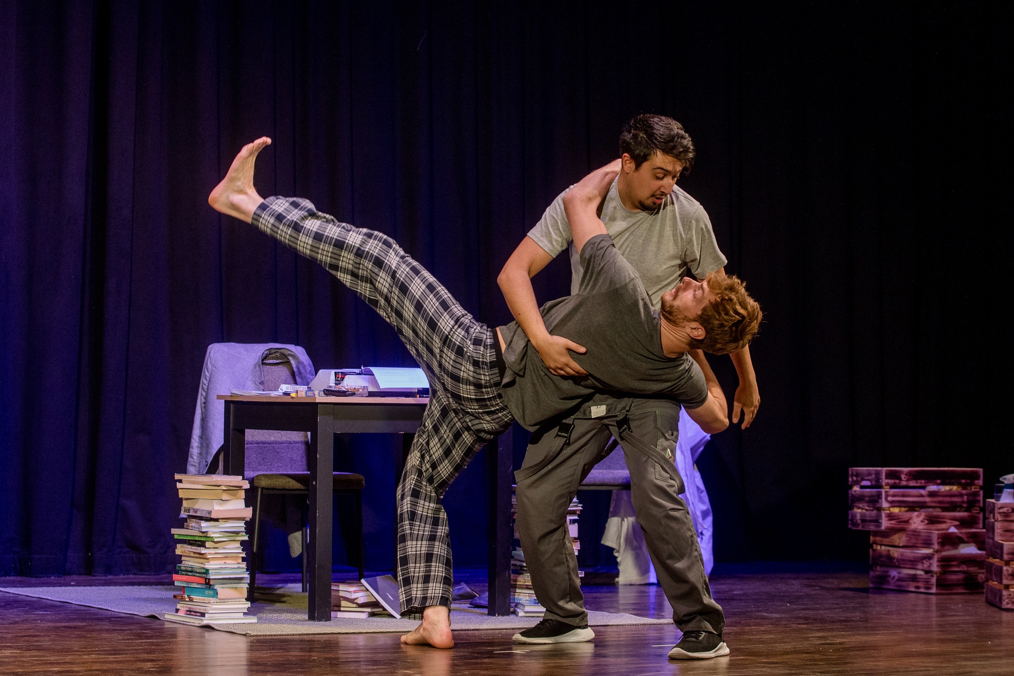 U predstavi su igrala dva mlada glumca, Konstantin Haag i Faris Pinjo, također dva različita glumačka habitusa, a opet obojica pobornici psihološkog realizma s izrazito romantičnim pogledom na teatar. Dva zanesenjaka komedijom i poznata televizijska lica.
