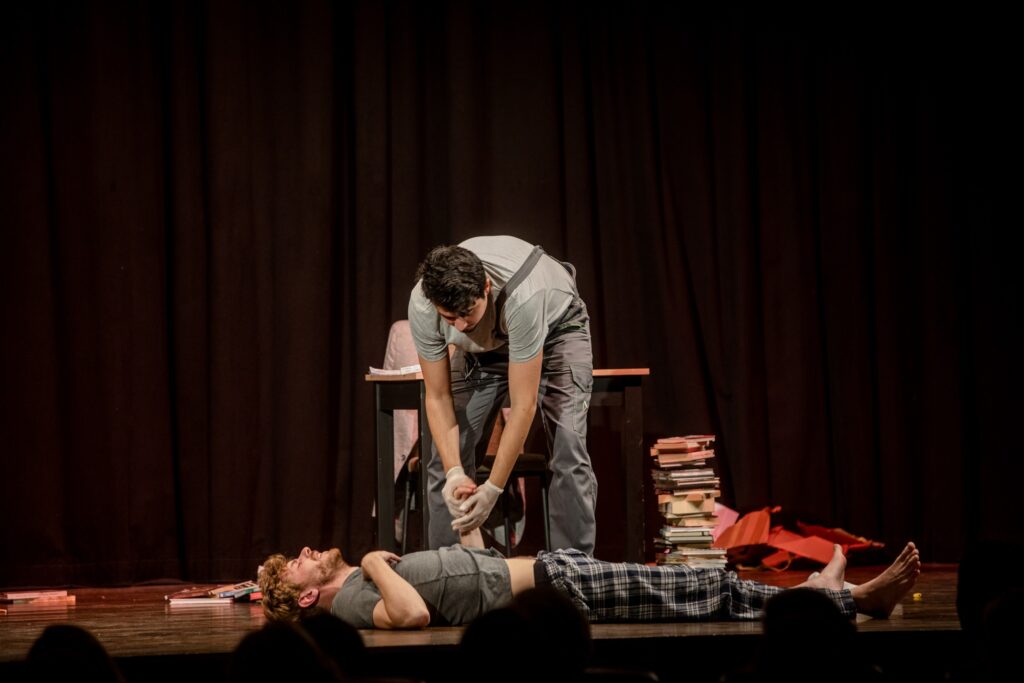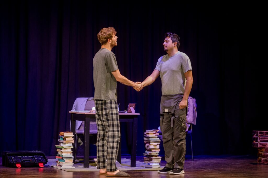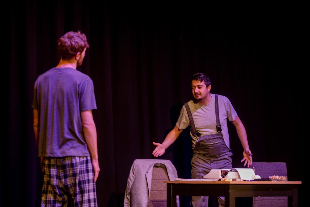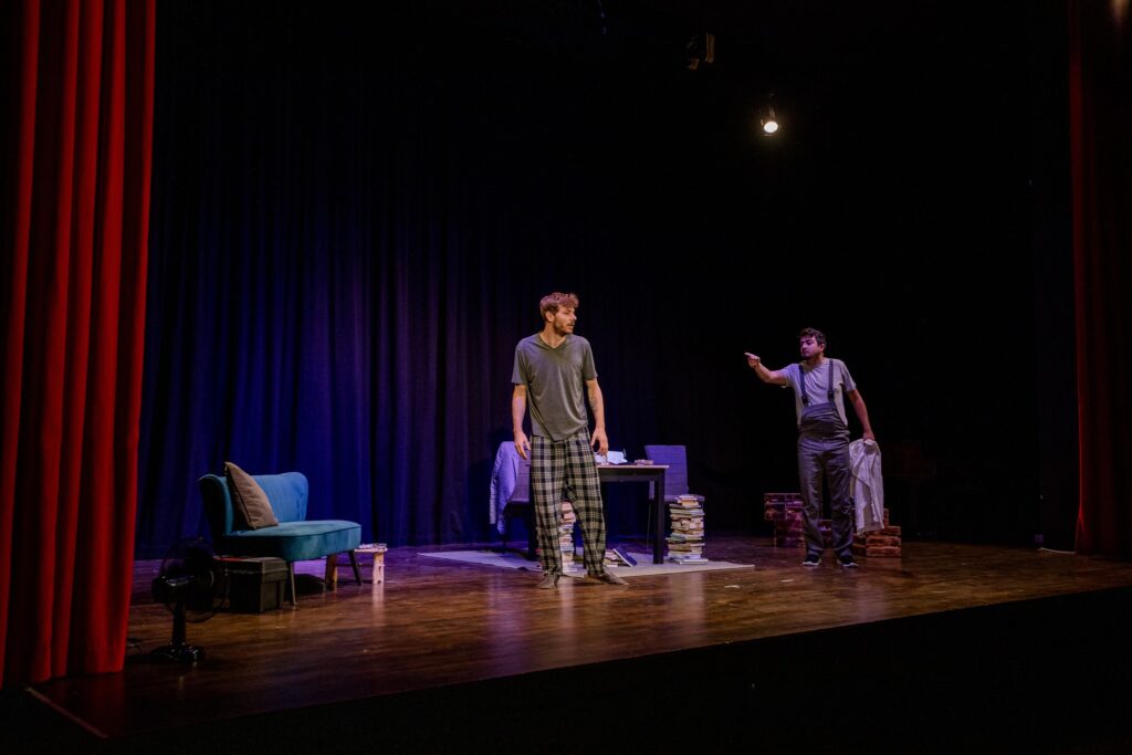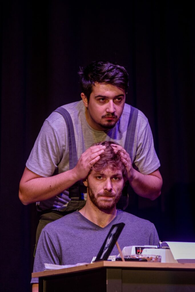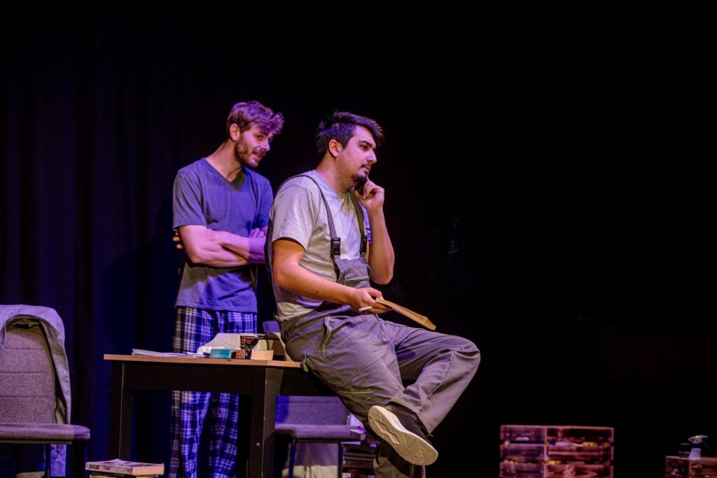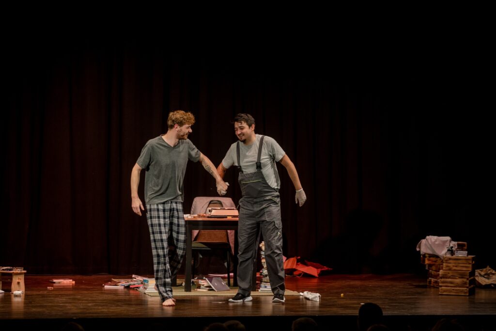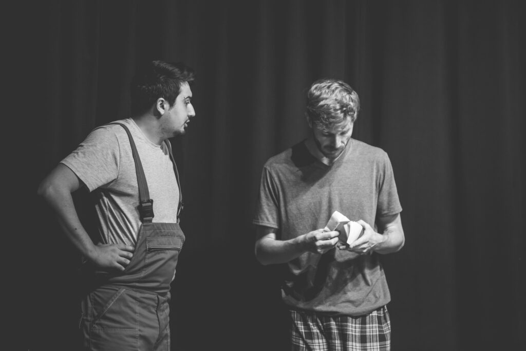 U predstavi su igrala dva mlada glumca, Konstantin Haag i Faris Pinjo, također dva različita glumačka habitusa, a opet obojica pobornici psihološkog realizma s izrazito romantičnim pogledom na teatar. Dva zanesenjaka komedijom i poznata televizijska lica.