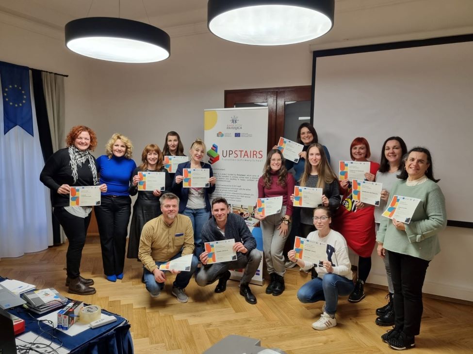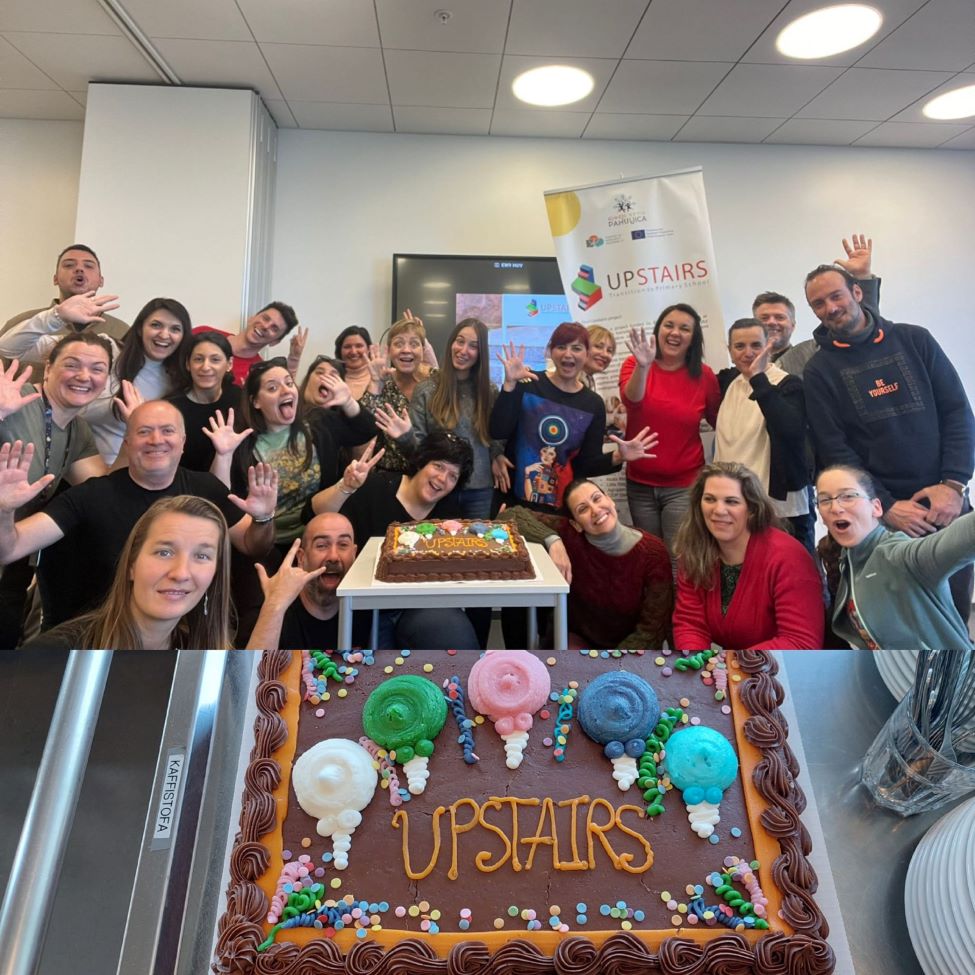 Treći projekt Transition to Primary School – Upstairs bio je ujedno i najduži i najzahtjevniji. Radilo se o dvogodišnjem KA220–SCH projektu (Partnerska suradnja u školskom obrazovanju). Projekt je započeo u rujnu 2022. Rapski vrtić i u ovom projektu bio je koordinator, a u projekt je bilo uključeno Sveučilište iz Krakova (Poljska), IDEC – ustanova za obrazovanje odraslih (Grčka) te dječji vrtići iz Bugarske, Španjolske, Portugala, Grčke i Islanda.