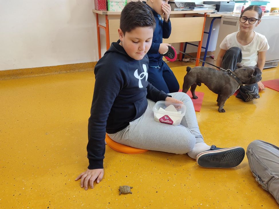 Bili su to ljubimci djece 4. razreda PŠ-a Kampor, a i odluka djece je bila ta da ih donesu u školu, u čemu ih je podržala i razrednica Venera Grubišić, budući da smatra da je to odlično za razvoj djece i osjećaja empatije prema životinjama. S ljubimcima su se tako đaci šetali, poigrali, opisivali su ih i razgovarali o njihovim osobinama…