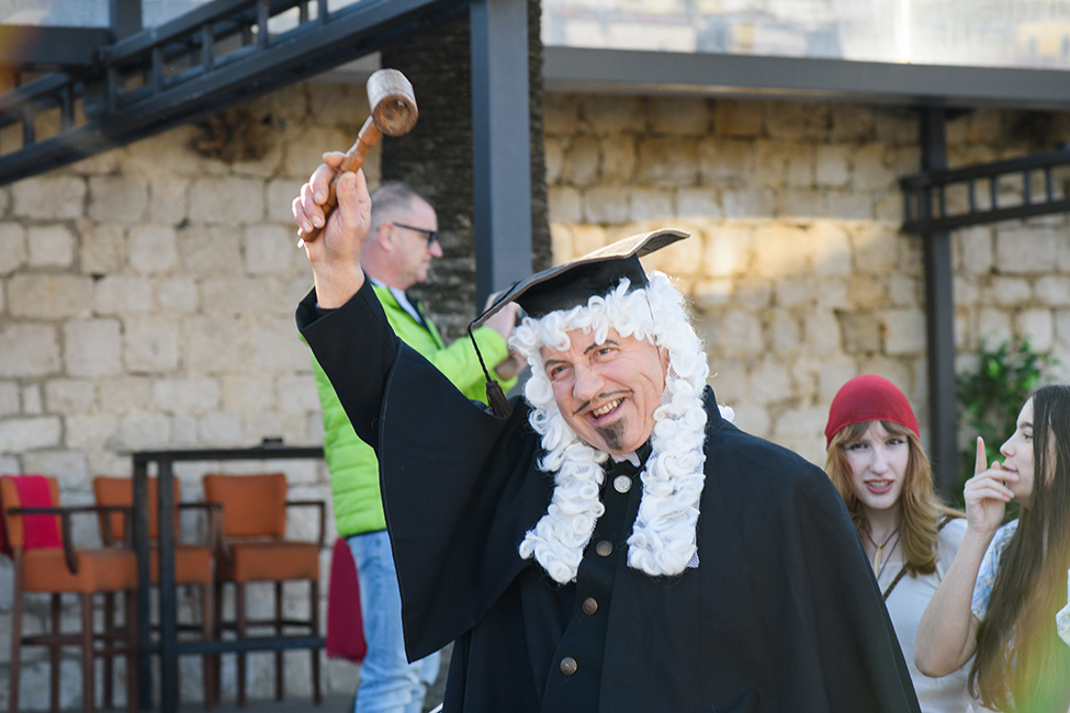 Tako je naš Jure Piškanac, pod oštrim Časnim sudom, predsjednikom suda Pere Kaca i odvjetnice braniteljice Jure Piškanca, Sanje Mundanijanke… osuđen.