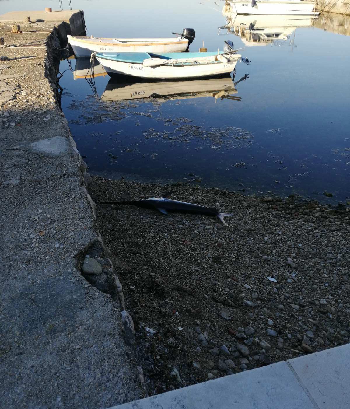 Čitateljica koja nam je poslala fotografije šetala se rano jutros po šetnici na Kaštelu kada je ugledala ovaj neobičan prizor i ribu koja se rijetko viđa na Rabu.