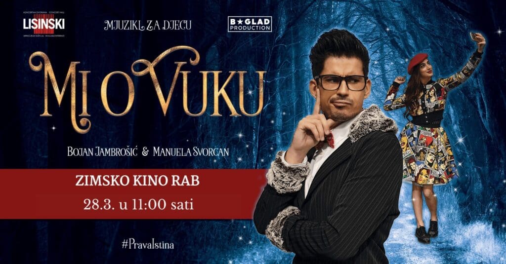 U organizaciji Pučkog otvorenog učilišta Rab te pod pokroviteljstvom Grada Raba, u petak 28. ožujka 2025., održat će se mjuzikl za djecu „Mi o vuku“ u izvedbi B Glad Produkcije.