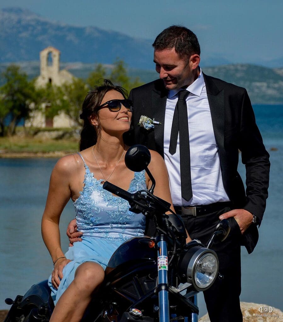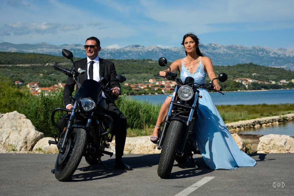 Mladenka kao da je sišla s modne piste, izgleda prekrasno na motoru, a osim prirodne ljepote koja ju krasi, kao da je rođena na ovoj Hondi Rebel! Mladoženja, visok momak, bori se sa Kawasaki Vulcanom, ali ide i njemu dobro, snalazi se. Aparati škljocaju, mladenci se uživili u photoshooting, a znatiželjni turisti zastajkuju sa strane i promatraju što se događa.