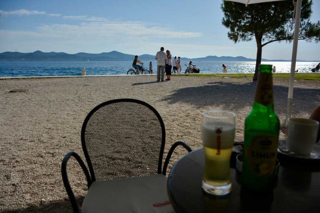 Odlazimo prema Zadru i zaustavljamo se kod zadarskih morskih orgulja, parkiramo i tražimo terasu na kojoj ćemo potrošiti neočekivanu dnevnicu. S obzirom na temperature vani i na put koji nas još očekuje, odlučujemo se ipak za hladan Radler, pa neka sve bude po zakonu i propisu.