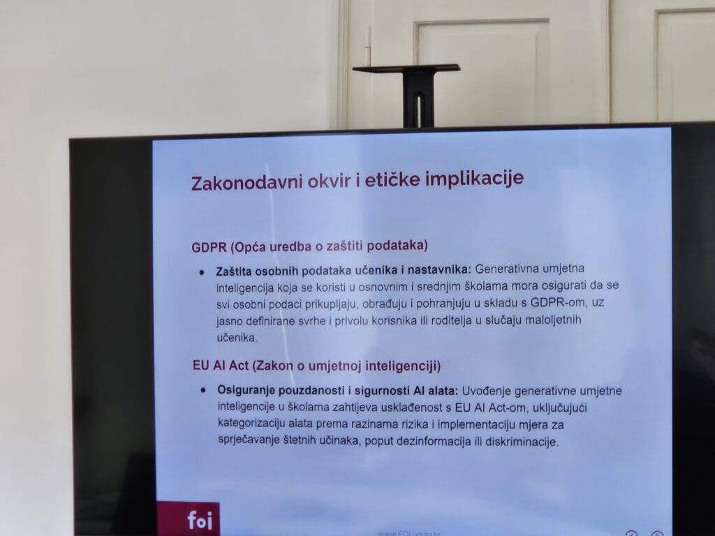 U sklopu fakultativnog predmeta “Umjetna inteligencija: od koncepta do primjene”, koji se eksperimentalno provodi u nekim hrvatskim srednjim školama, pa tako i u Strojarskoj i prometnoj školi Varaždin, te Srednjoj školi Markantuna de Dominisa Rab, za polaznike je organizirana edukacija o umjetnoj inteligenciji.