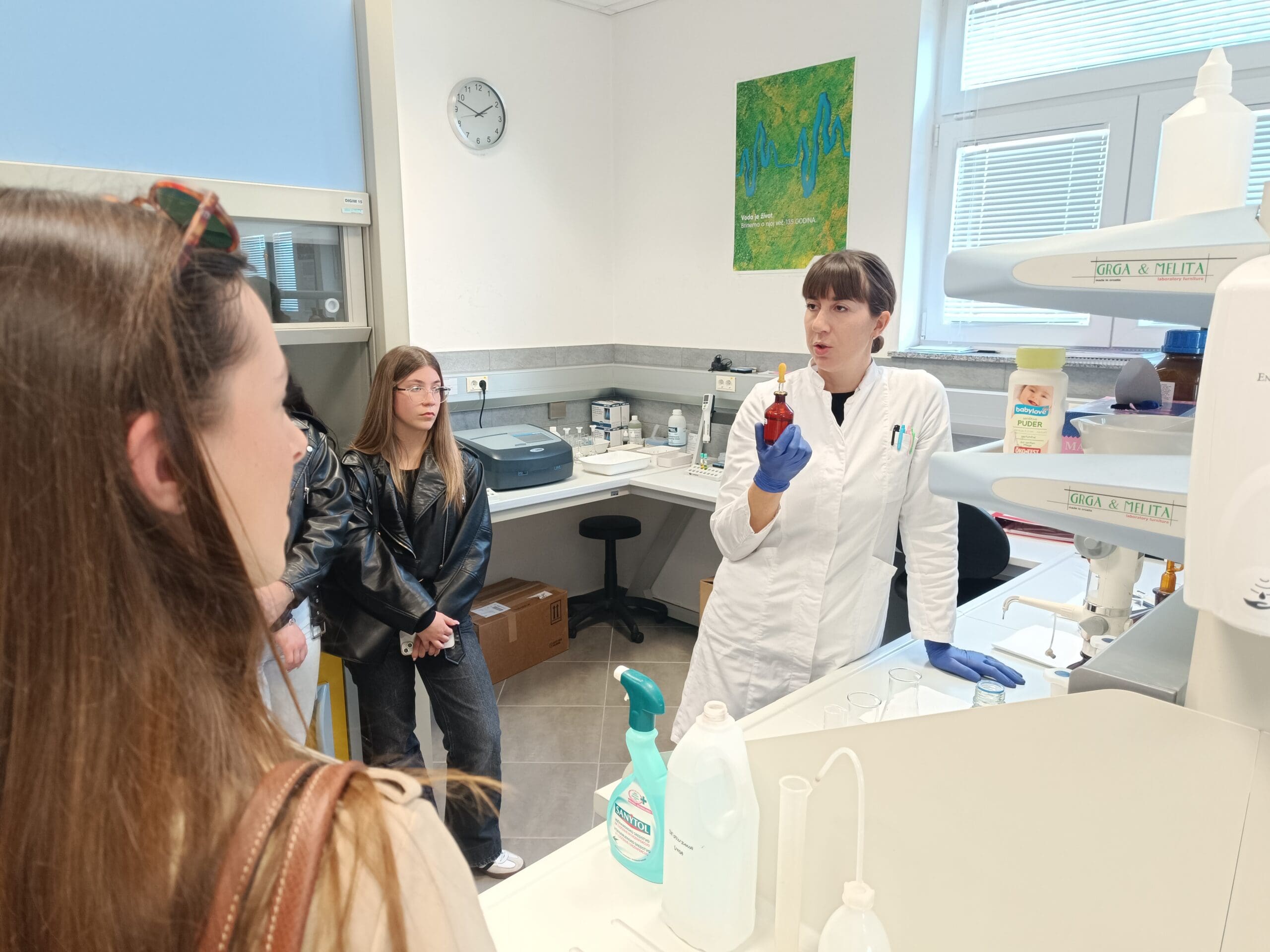 Dana 26. ožujka, u sklopu obilježavanja Svjetskog dana voda, učenici prvog razreda gimnazije u pratnji svojih profesorica Ive Maškarin i Lane Jurković posjetili su laboratorij Vrela d.o.o. za određivanje kvalitete vode u Supetarskoj Drazi na Mlinici.