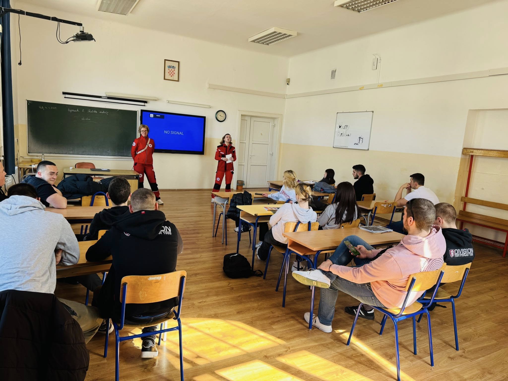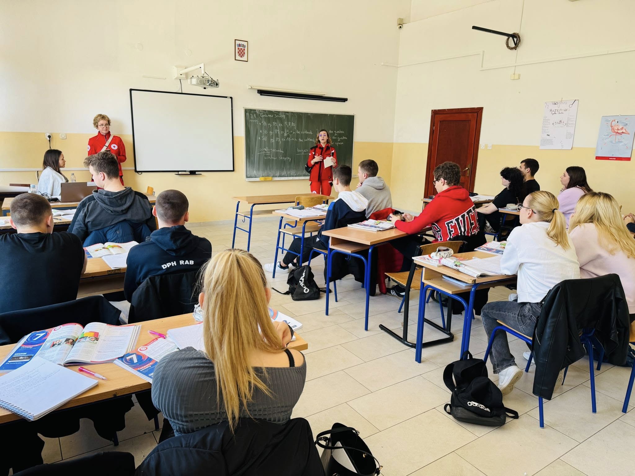 U petak, 4. travnja 2025. učenike Srednje škole Markantuna de Dominisa posjetile su ravnateljica GDCK-a Rab Tanja Rizner i koordinatorica volontera GDCK-a Klaudia Kordić, predstavnice Gradskog društva Crvenog križa Rab.