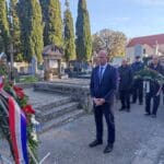 Kod središnjeg križa na Gradskom groblju vijenac je prvo položila delegacija Grada Raba na čelu s gradonačelnikom Nikolom Grgurićem, a potom i delegacija Udruge antifašističkih boraca grada Raba.