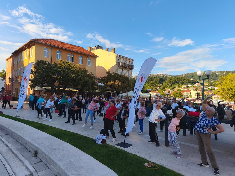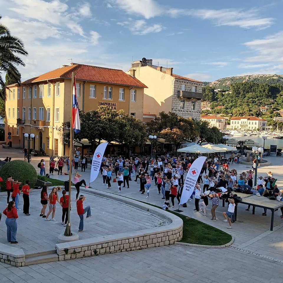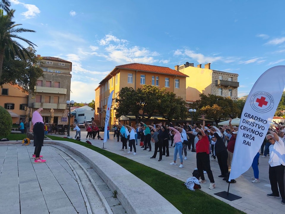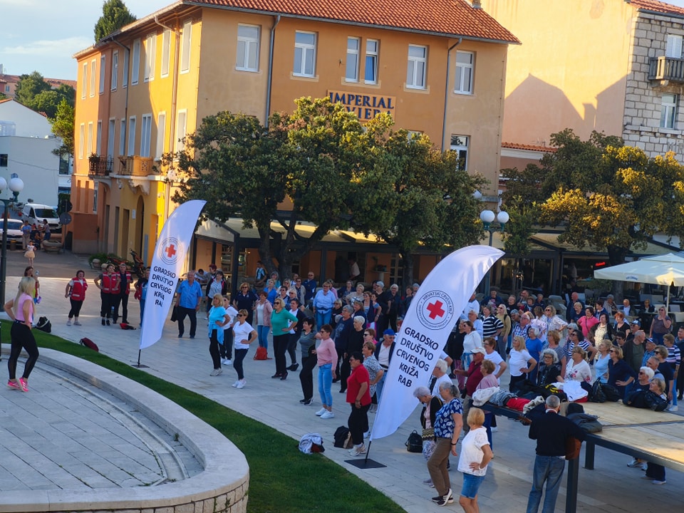 U Tjednu Crvenog križa GDCK Rab je okupio više od 200 vježbačica i vježbača zlatne dobi i uz trenericu Manuelu i 14 mladih volontera jučer su odradili trening na otvorenom.