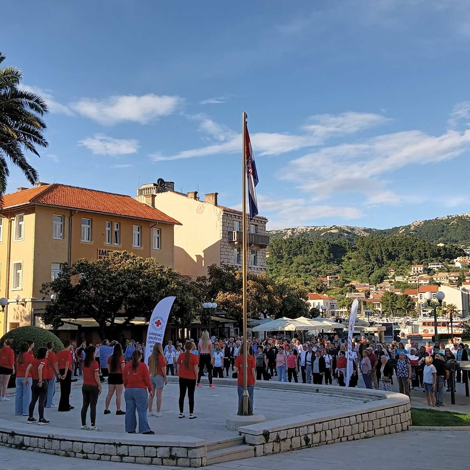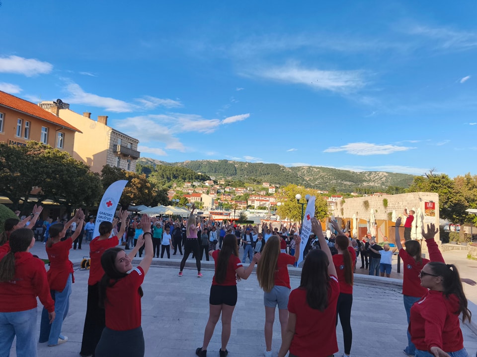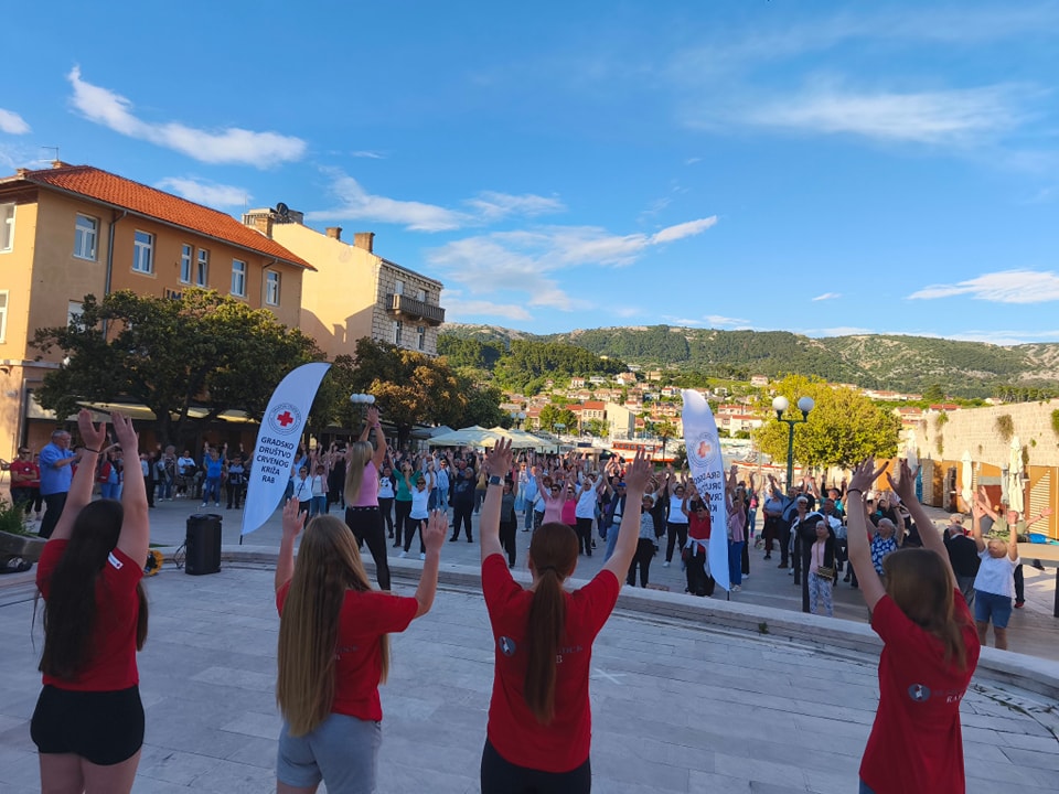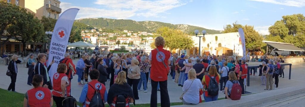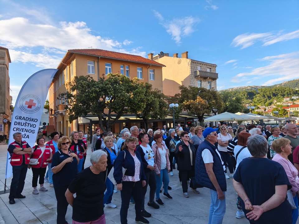U Tjednu Crvenog križa GDCK Rab je okupio više od 200 vježbačica i vježbača zlatne dobi i uz trenericu Manuelu i 14 mladih volontera jučer su odradili trening na otvorenom.