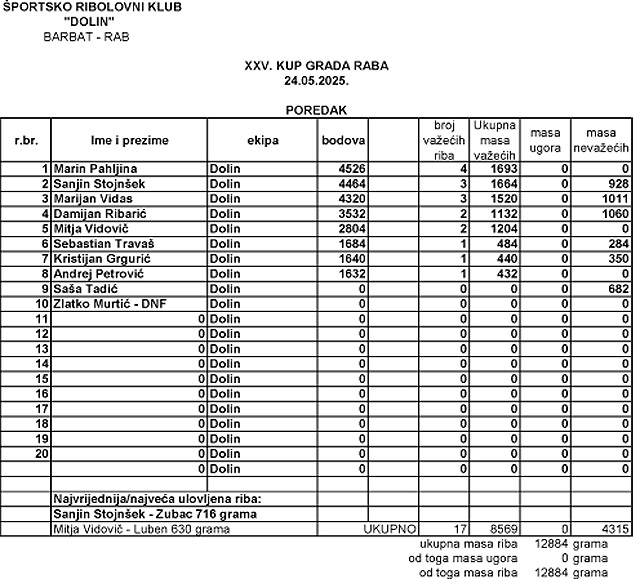 Home Aktualno Marin Pahljina pobjednik 25. Kupa grada Raba, Sanjin Stojnšek vlasnik najvrijednijeg ulova